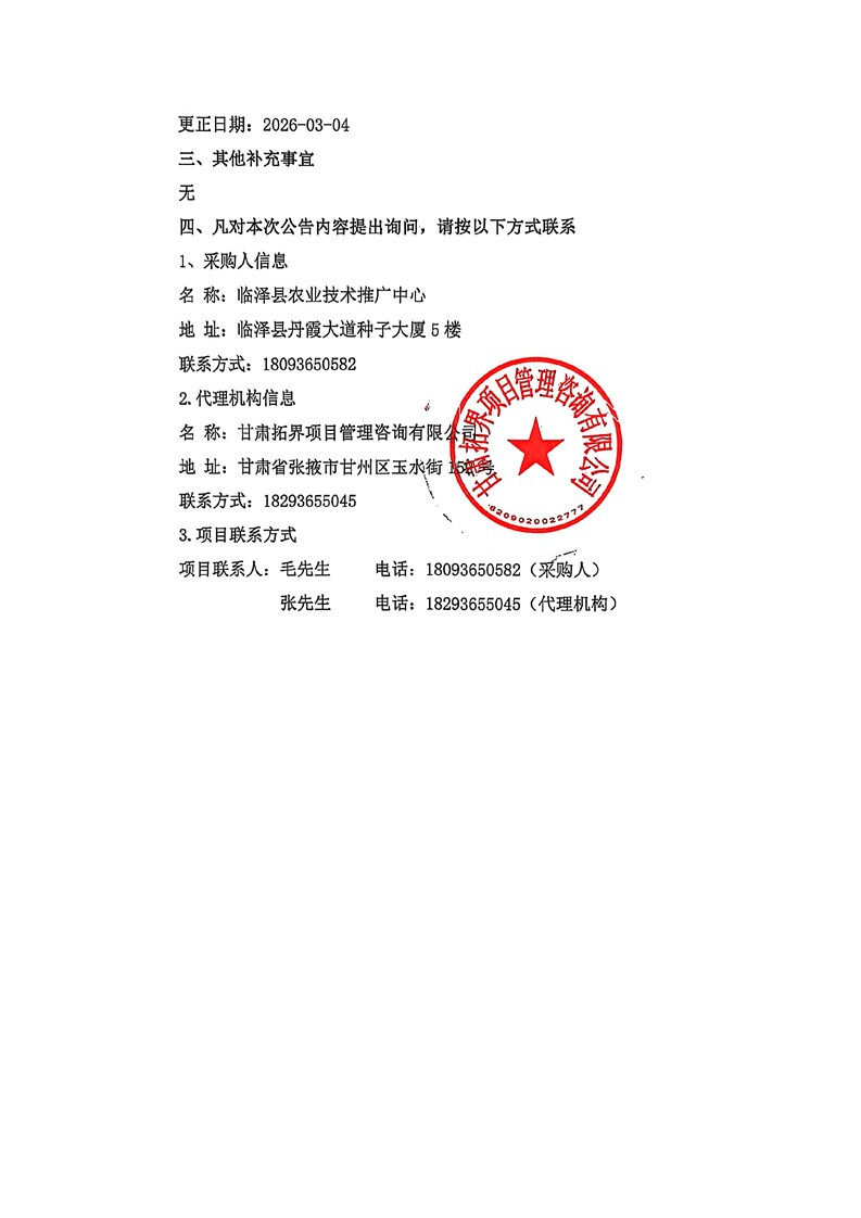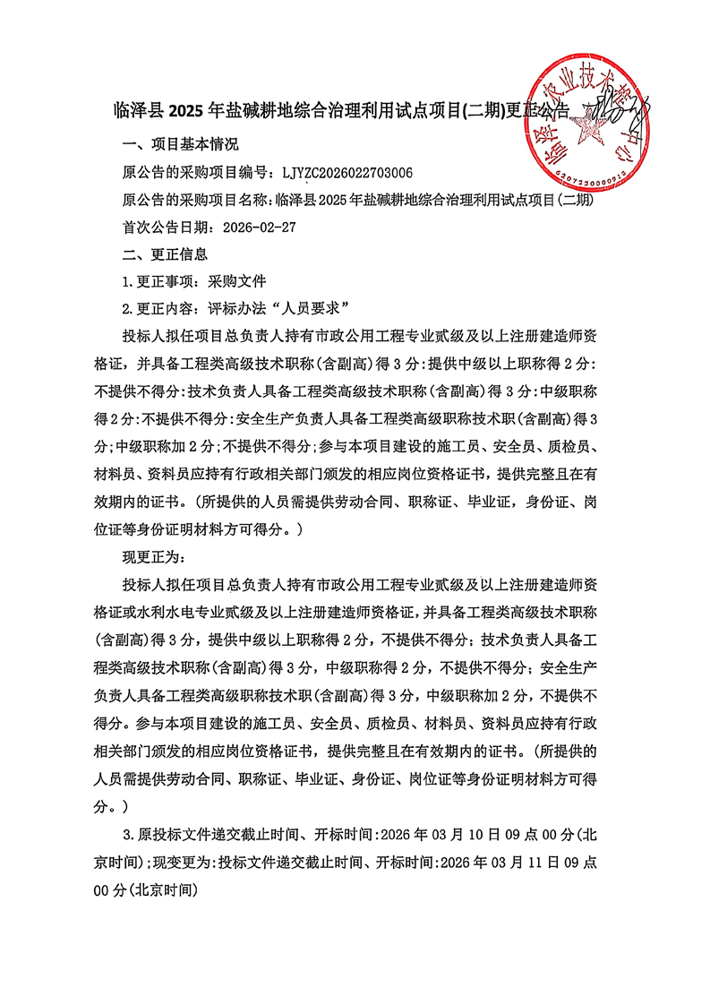 临泽县2025年盐碱耕地综合治理利用试点项目(二期)竞争性磋商变更公告[更正事项]