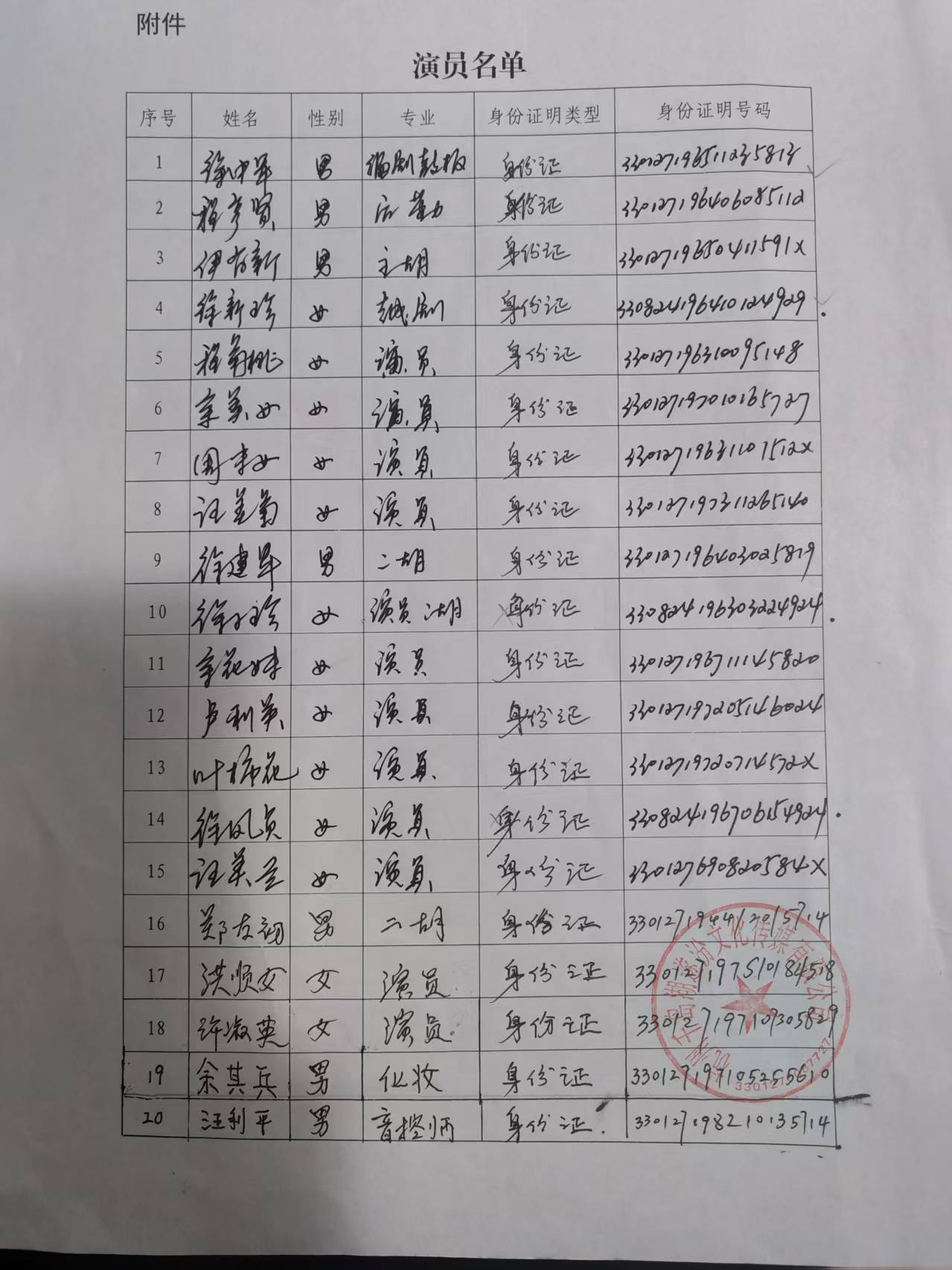 演职人员信息(按《公告》附件*格式填写):***************************************(*).***