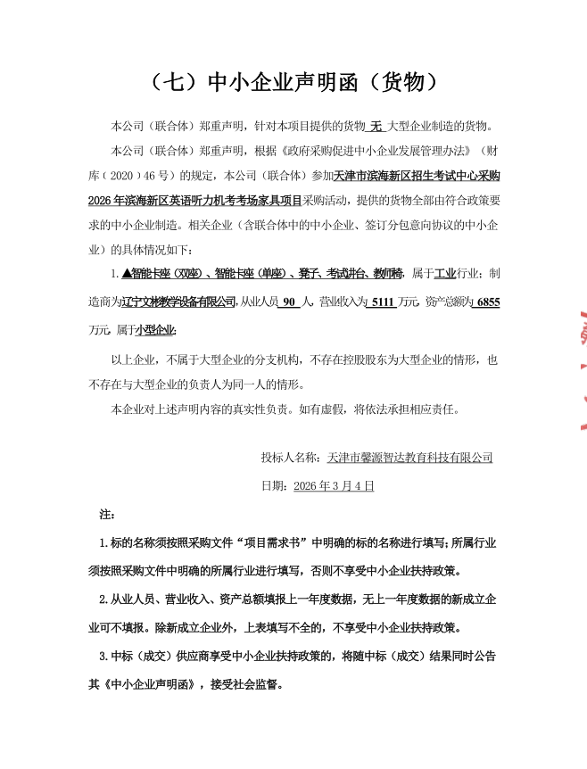 中小企业声明函.***