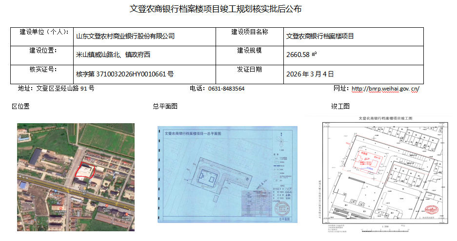 文登农商银行档案楼项目竣工规划核实批后公布