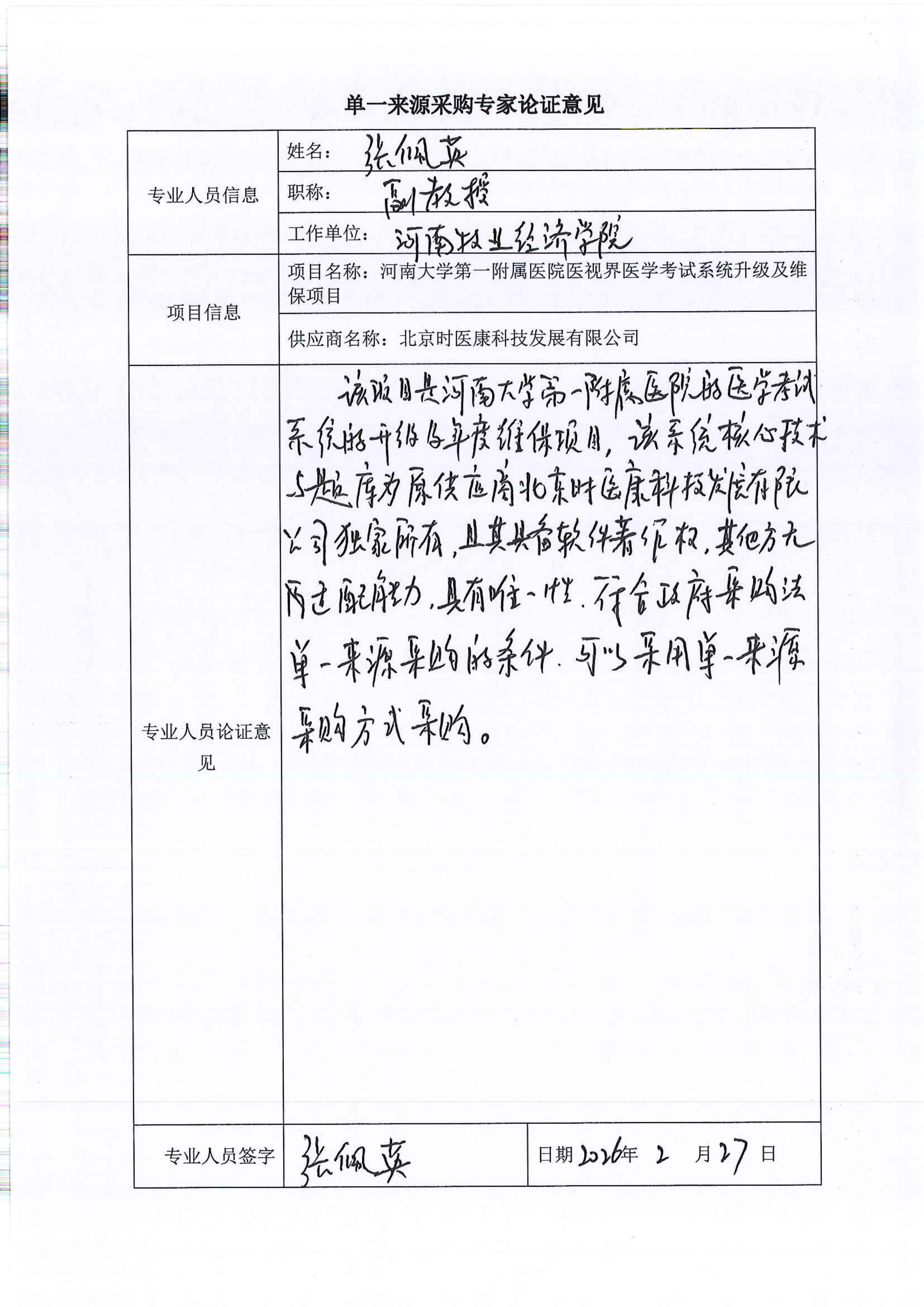 | 本项目聚焦住培医视界医学考试系统升级及年度维保,升级后将优化智能组卷、防作弊、成绩分析等核心功能,拓展题库覆盖面;维保含****小时技术支持、数据备份及故障排查,保障系统适配住培考核全流程。该系统核心技术与题库为原供应商独家所有,且其具备软件著作权,其他方无适配能力。原供应商熟悉系统架构,可保障数据完整迁移、系统平稳衔接,同时能贴合政策动态快速更新题库与功能,确保服务专业高效。根据《中华人民共和国政府采购法》第三十一条规定,本项目拟采用单一来源方式进行采购。 | ||||||||||||||||