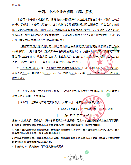 | *、采购项目名称:焦作市自然资源和规划局山阳分局山阳区中星街道李贵作村高标准农田示范区项目 | |||||||||||||||||||||||||||||||