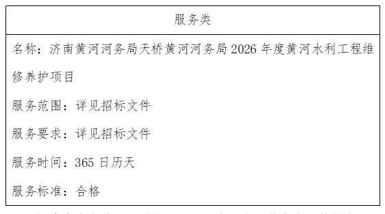济南黄河河务局天桥黄河河务局2026年度黄河水利工程维修养护项目中标结果公告