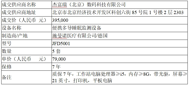 中日友好医院****年便携多导睡眠监测设备采购项目成交结果公告
