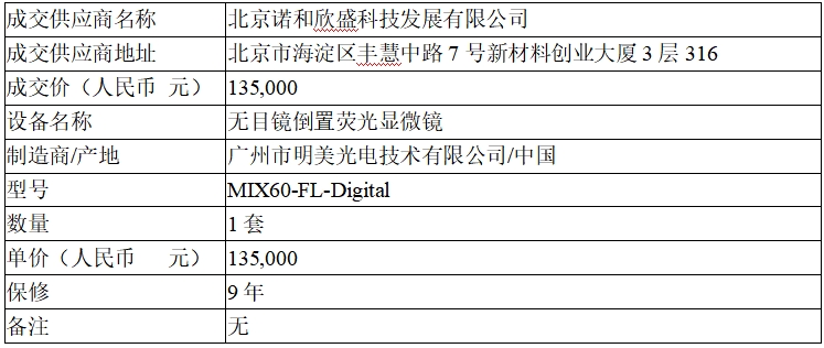 中日友好医院****年无目镜倒置荧光显微镜采购项目成交结果公告