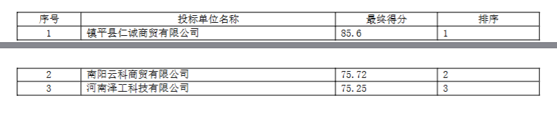 | 本次中标公告在《河南省政府采购网》、全国公共资源交易平台(河南省·镇平县)、河南省电子招标投标公共服务平台、中国招标投标公共服务平台上发布,中标公告期限为*个工作日 。 | |||||||||||||||||||||||||||||||
