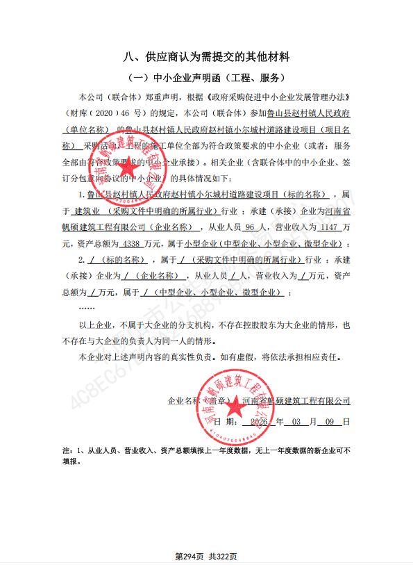 | *、采购项目名称:鲁山县赵村镇人民政府赵村镇小尔城村道路建设项目 | |||||||||||||||||||||||||||||||