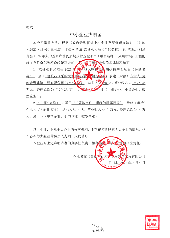 范县水利局范县2025年大中型水库移民后期扶持基金项目-成交公告