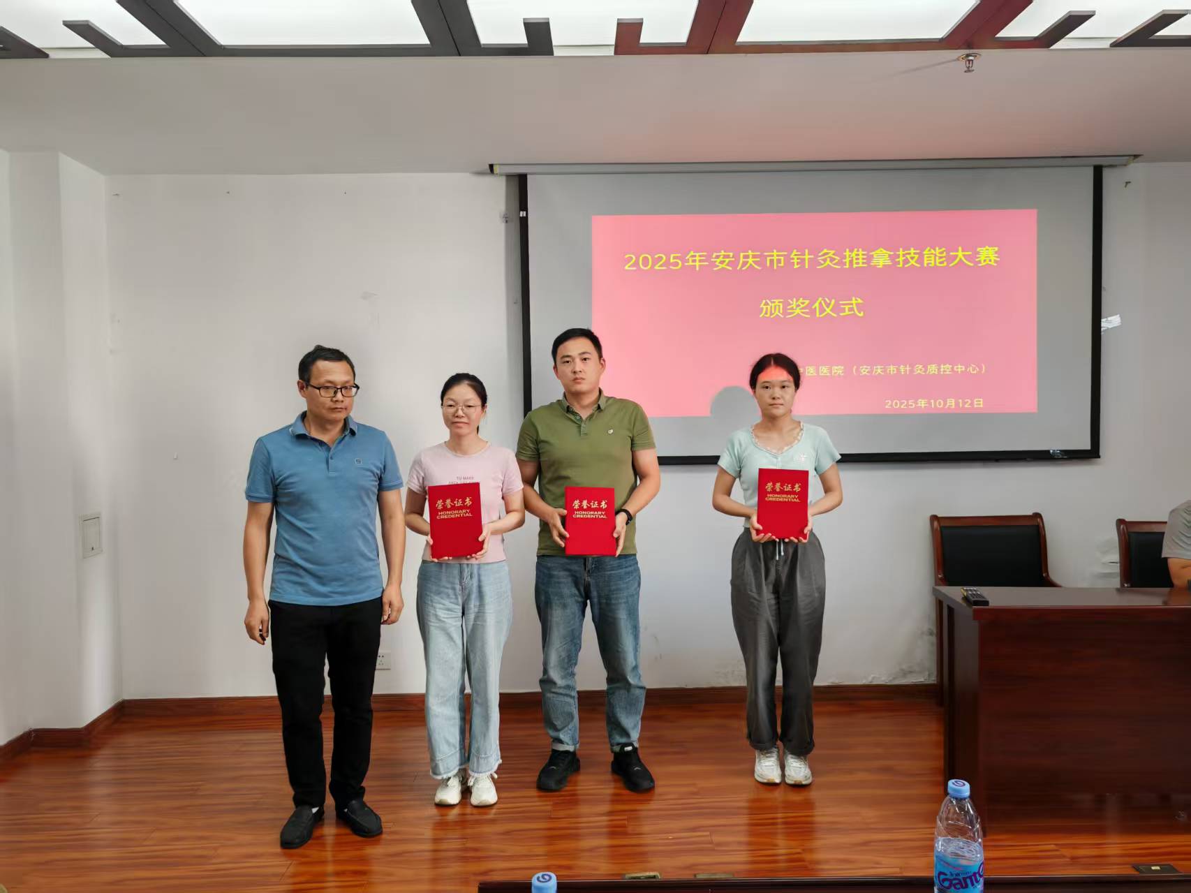 **月**日,由安庆市针推质控中心主办的安庆市针推技能大赛圆满举行。安医大附属安庆第一人民医院中医科团队凭借扎实的理论功底、精湛的临床技艺和默契的团队协作,从全市十支参赛队伍中脱颖而出,荣获团体三等奖,充分展示了医院中医药专业队伍的实力与风采。