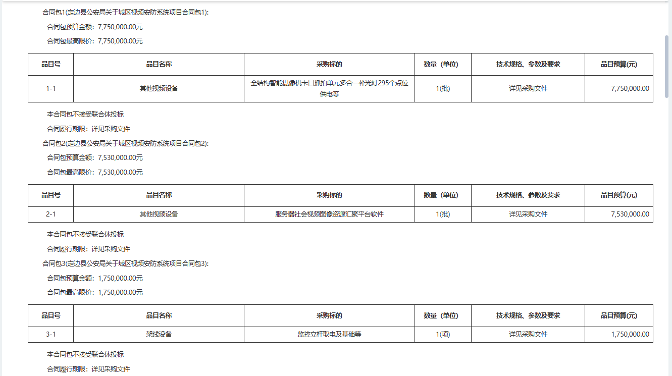 合同包*(定边县公安局关于城区视频安防系统项目合同包*):