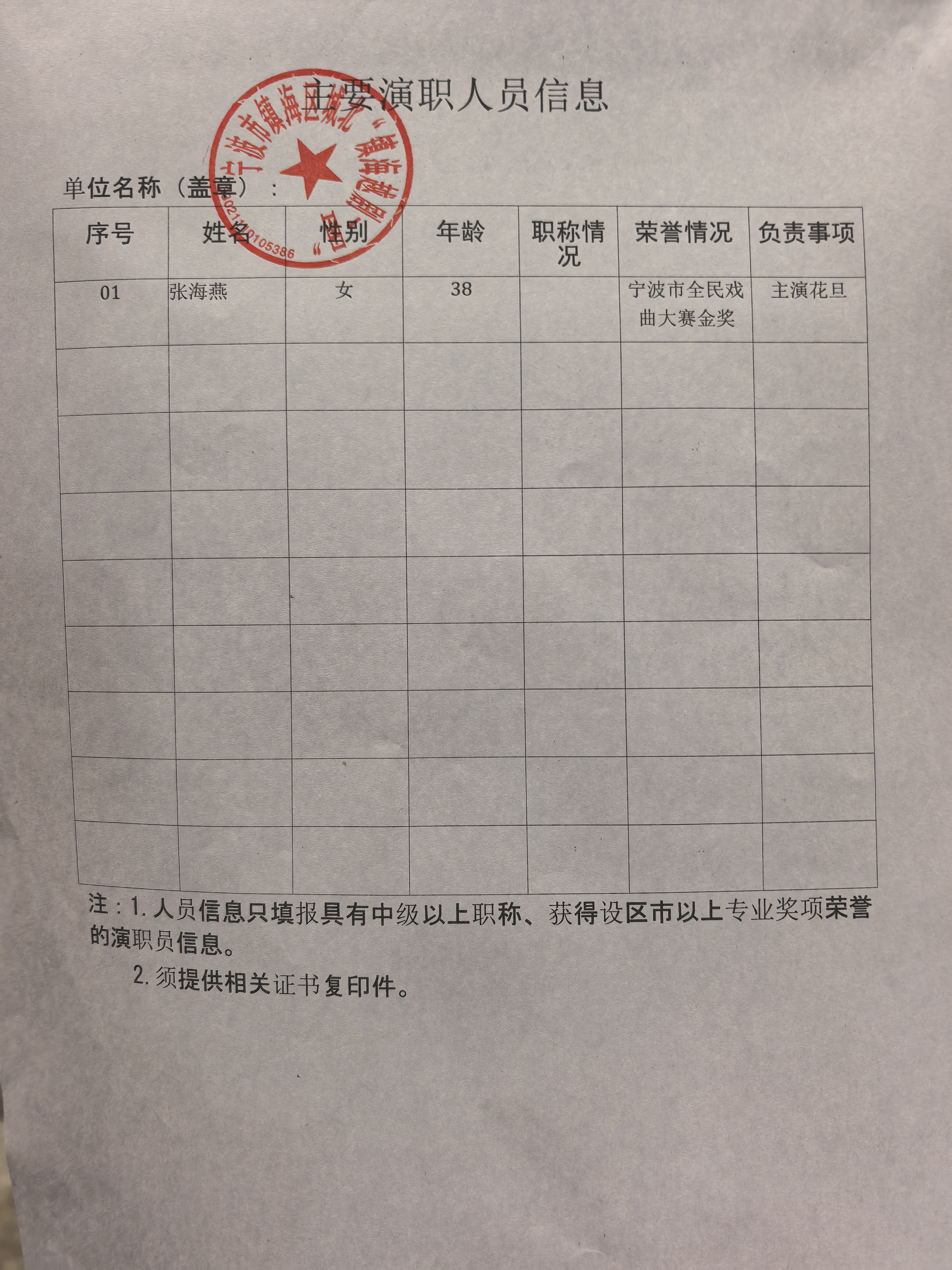 演职人员信息(按《公告》附件*格式填写):张海燕名单.***