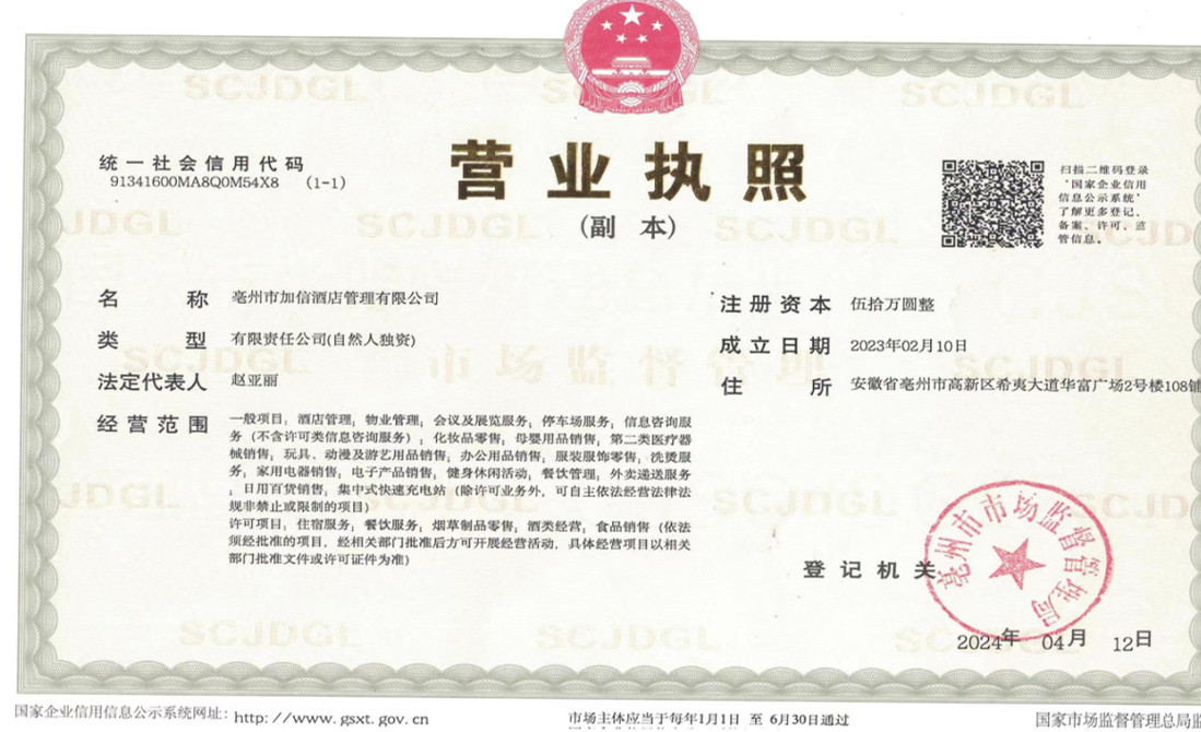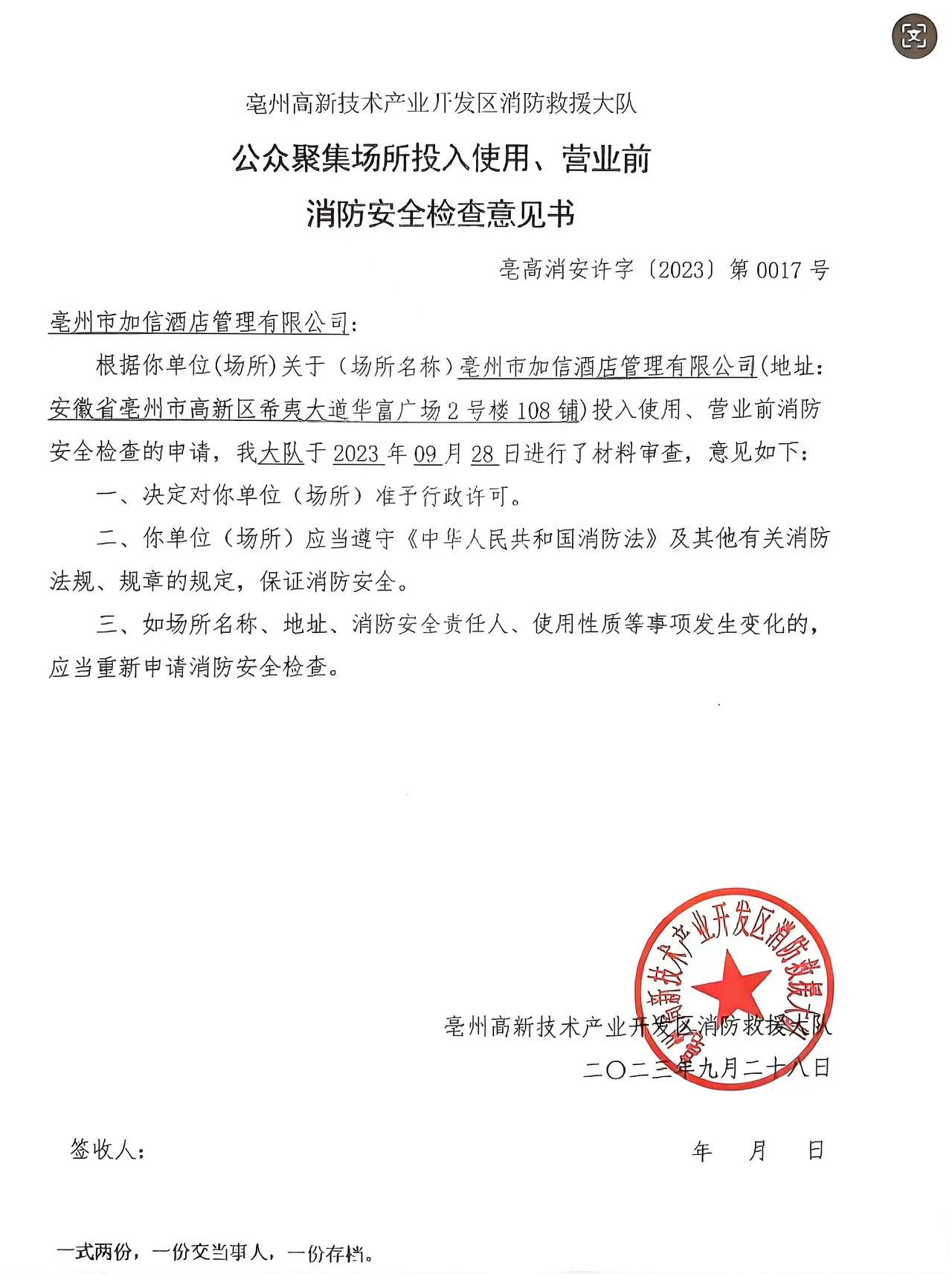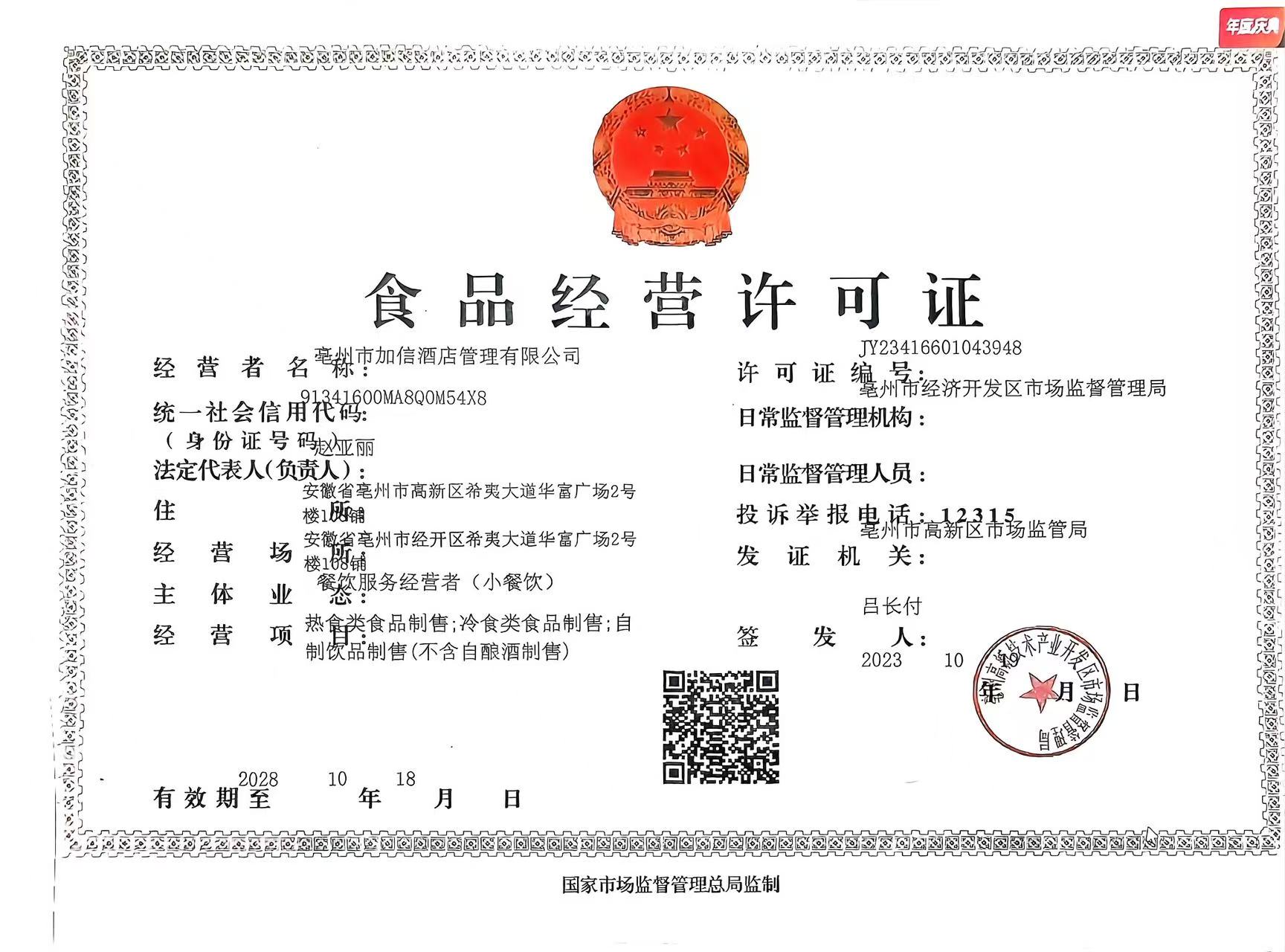 亳州市加信酒店管理有限公司入围2025-2026年安徽省党政机关会议场所保障服务开放式框架协议采购方案的结果公告
