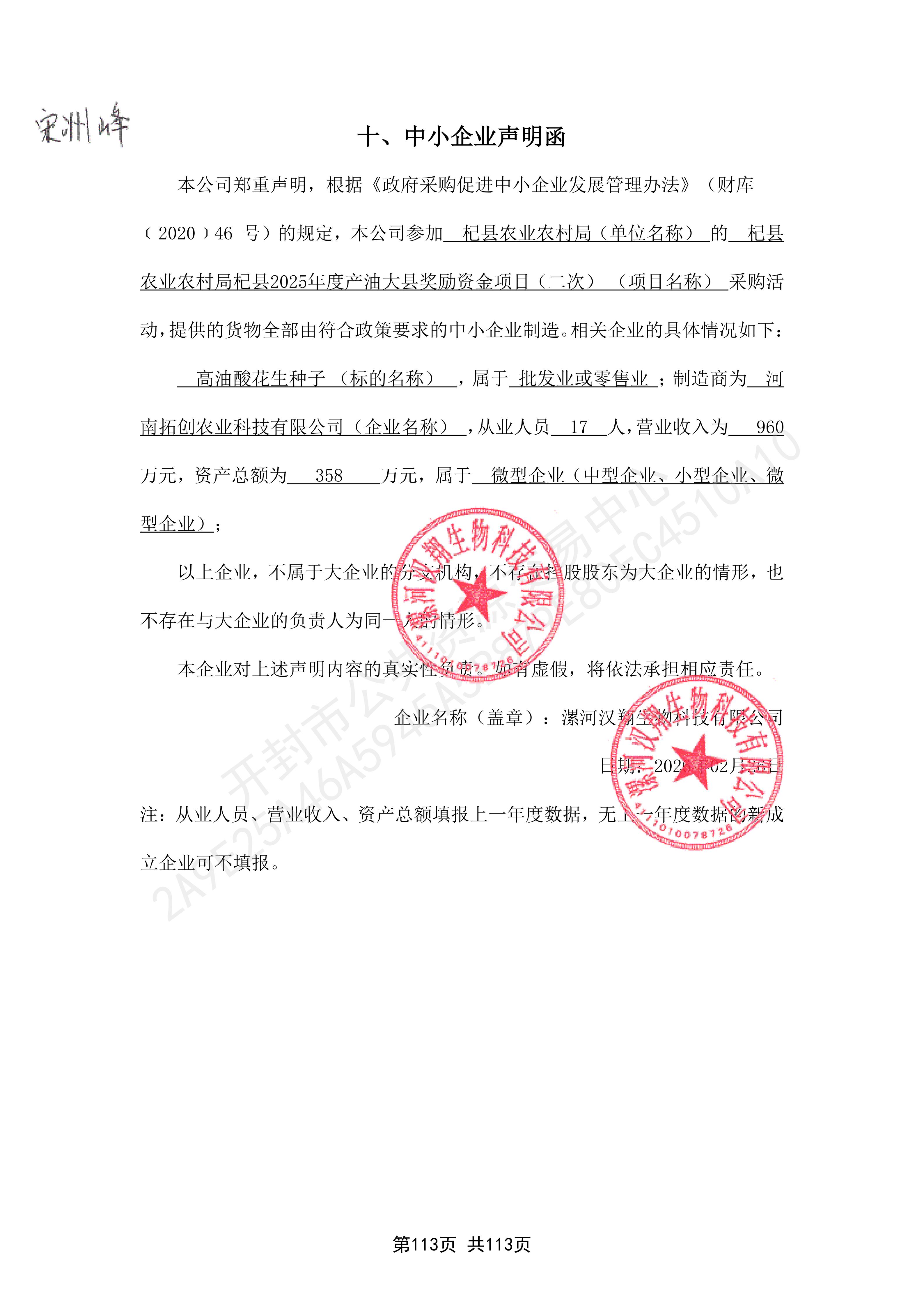 | 第一中标候选人河南中农飞防生态科技有限公司因自身原因不能履行合同,自愿放弃中标候选人资格,采购人根据《中华人民共和国政府采购法实施条例》第四十九条的规定,确定第二中标候选人漯河汉翔生物科技有限公司作为成交供应商。 | ||||||||||||