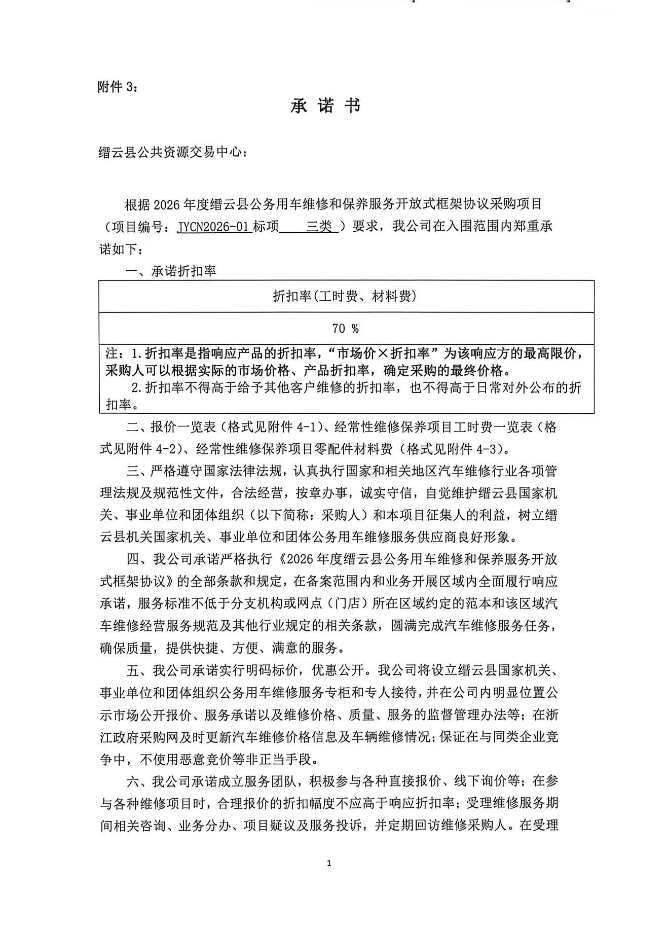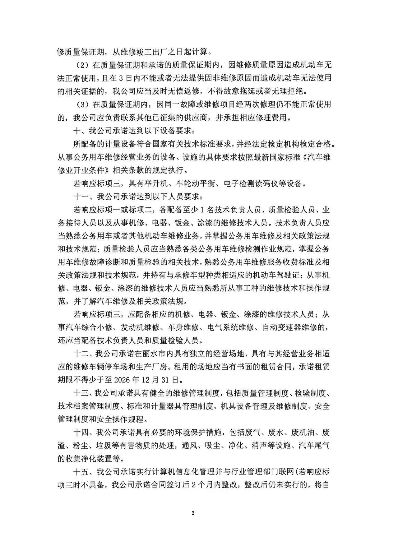 项目名称:****年度缙云县公务用车维修和保养服务开放式框架协议采购项目