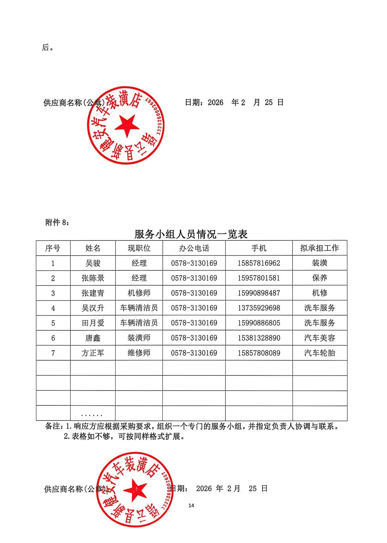 缙云县新健安汽车装潢店入围2026年度缙云县公务用车维修和保养服务开放式框架协议采购项目的结果公告