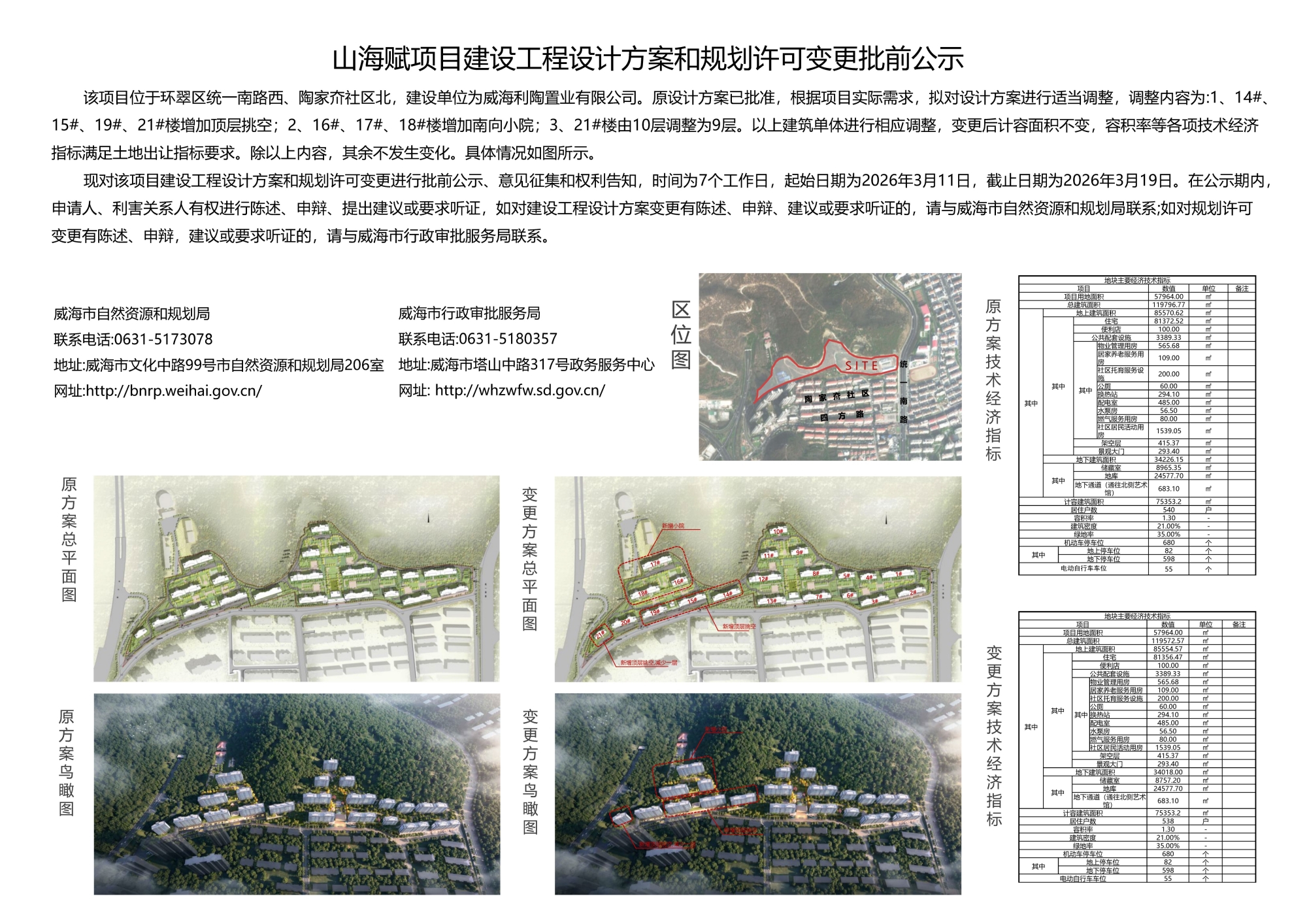 山海赋项目建设工程设计方案和规划许可变更批前公示