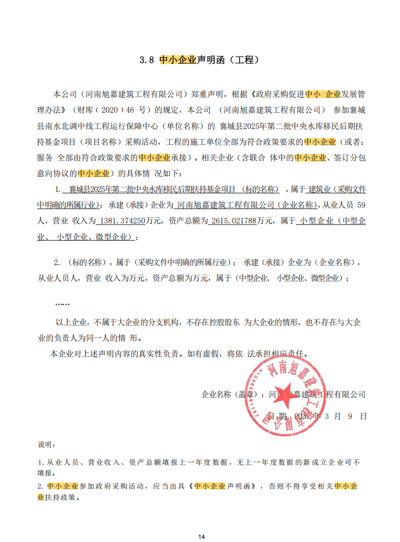 襄财磋商采购-2026-2襄城县南水北调中线工程运行保障中心襄城县2025年第二批中央水库移民后期扶持基金项目(不见面开标)-成交公告
