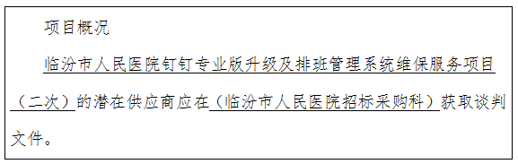 临汾市人民医院钉钉专业版升级及排班管理系统维保服务项目(二次)竞争性谈判公告