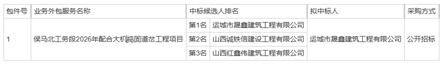 侯马北工务段2026年配合大机捣固道岔工程中标候选人公示