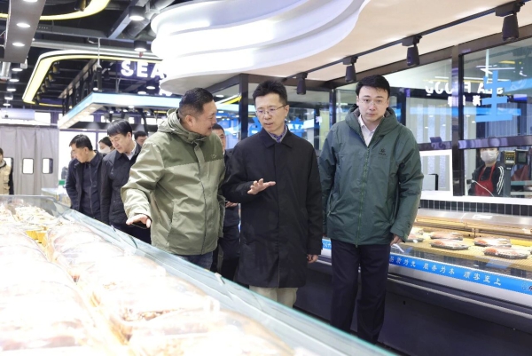 在强深水产生鲜超市,朱欢察看食品安全、质量监管、消防安全等工作开展情况,听取相关负责人情况汇报。他强调,企业要树牢安全发展理念,严守食品质量安全底线,严把商品进货关、质量关、销售关,全力保障商品品质。要持续绷紧安全生产这根弦,强化全员安全意识,常态化开展安全隐患排查整治,定期组织消防应急演练,全面提升应急处置能力,坚决防范各类安全事故发生,守牢经营安全与消费安全双重底线。