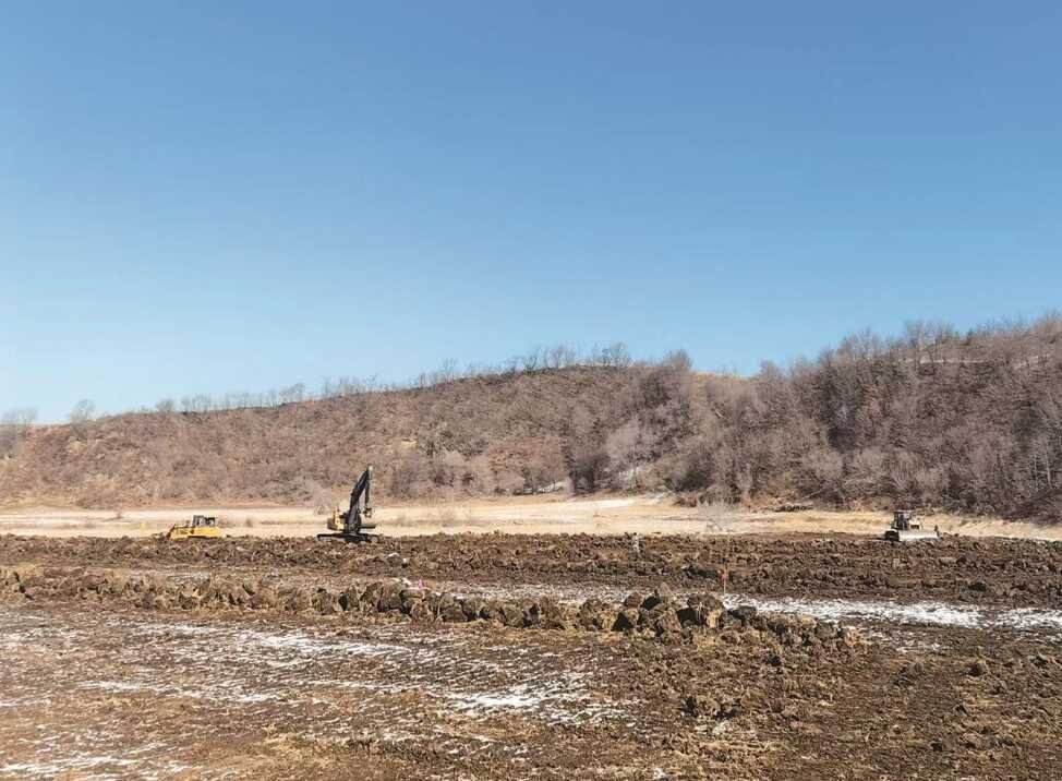 目光从城市转向乡野,辉南县高标准农田建设项目现场同样是一派火热,预制渠道安装工作正有条不紊地进行,机械轰鸣声与施工人员的忙碌身影交织。