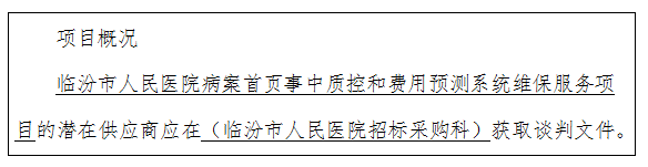 临汾市人民医院病案首页事中质控和费用预测系统维保服务项目竞争性谈判公告