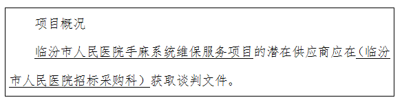 临汾市人民医院手麻系统维保服务项目竞争性谈判公告