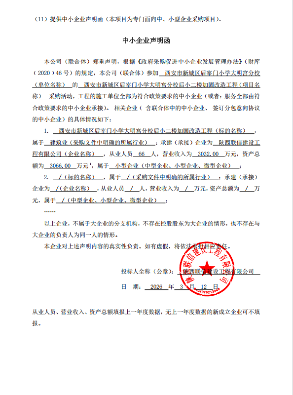 西安市新城区后宰门小学大明宫分校后小二楼加固改造工程中标结果公告