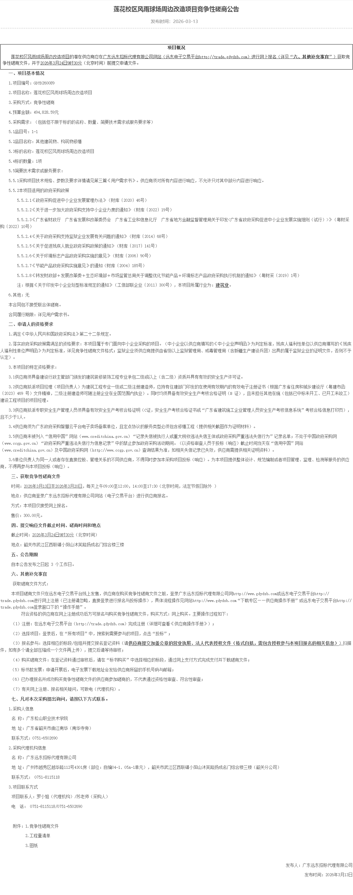 【采购公告】莲花校区风雨球场周边改造项目竞争性磋商公告