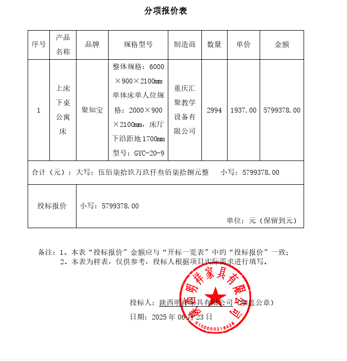 原公告的合同包*(陕西国防工业职业技术学院学生公寓家具采购项目)中标金额(第*候选人):无,更正为:*,***,***.**元