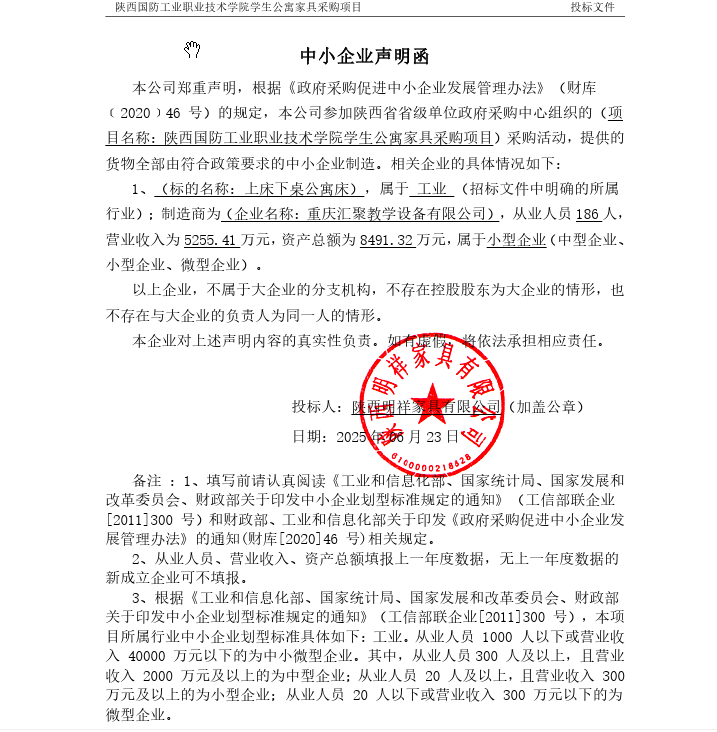 原公告的合同包*(陕西国防工业职业技术学院学生公寓家具采购项目)中标供应商(第*候选人):无,更正为:陕西明祥家具有限公司。