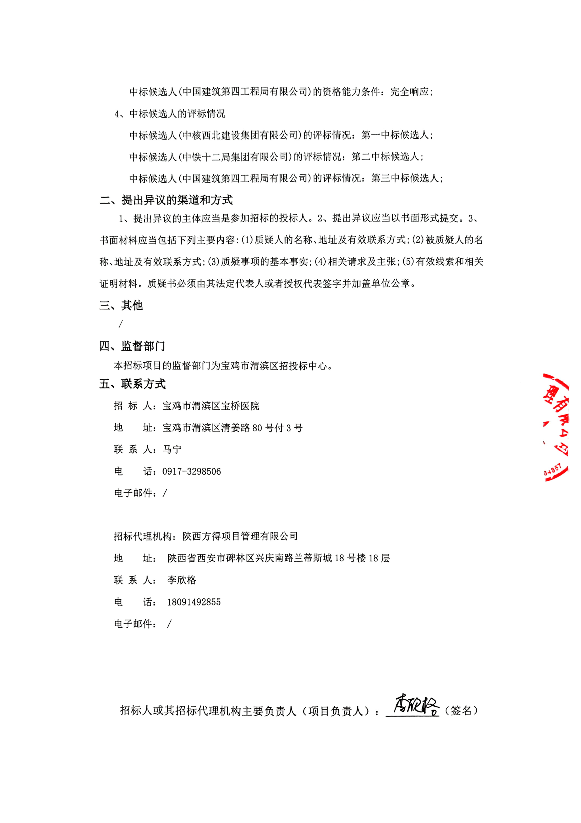 宝鸡市渭滨区医养结合老年养护院建设项目***总承包(二次)中标候选人公示