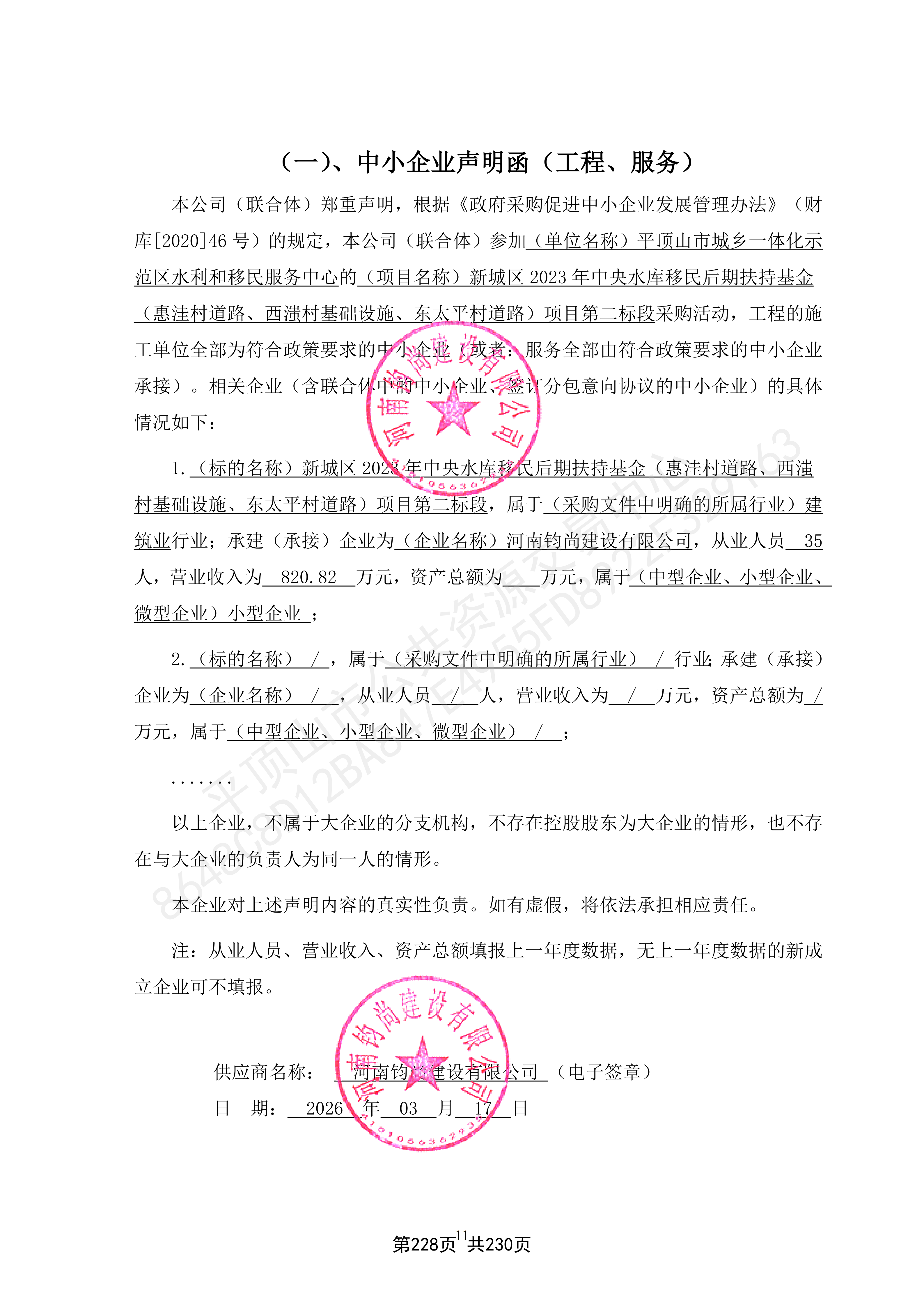 【平公资采2026189号】新城区2023年中央水库移民后期扶持基金(惠洼村道路、西滍村基础设施、东太平村道路)项目第2标段成交公告