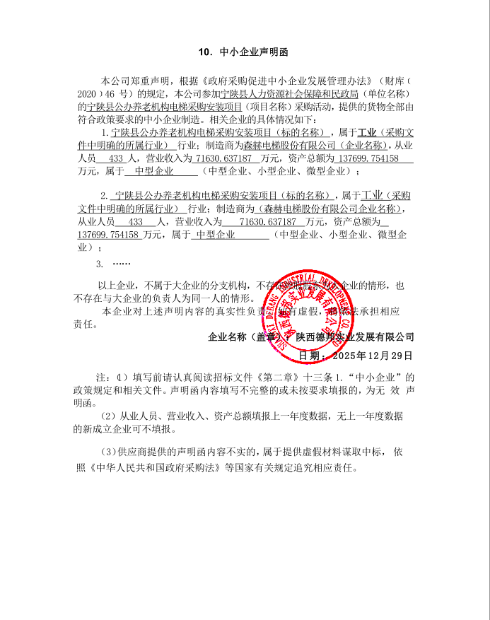 宁陕县公办养老机构电梯采购项目结果更正公告(第二次)