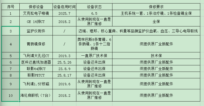 我院拟对以下医疗设备保修项目进行购前论证,凡有能力维修以下设备且符合要求的公司可以在截止时间前投递材料。已经投递过资料的公司无需重复投递。