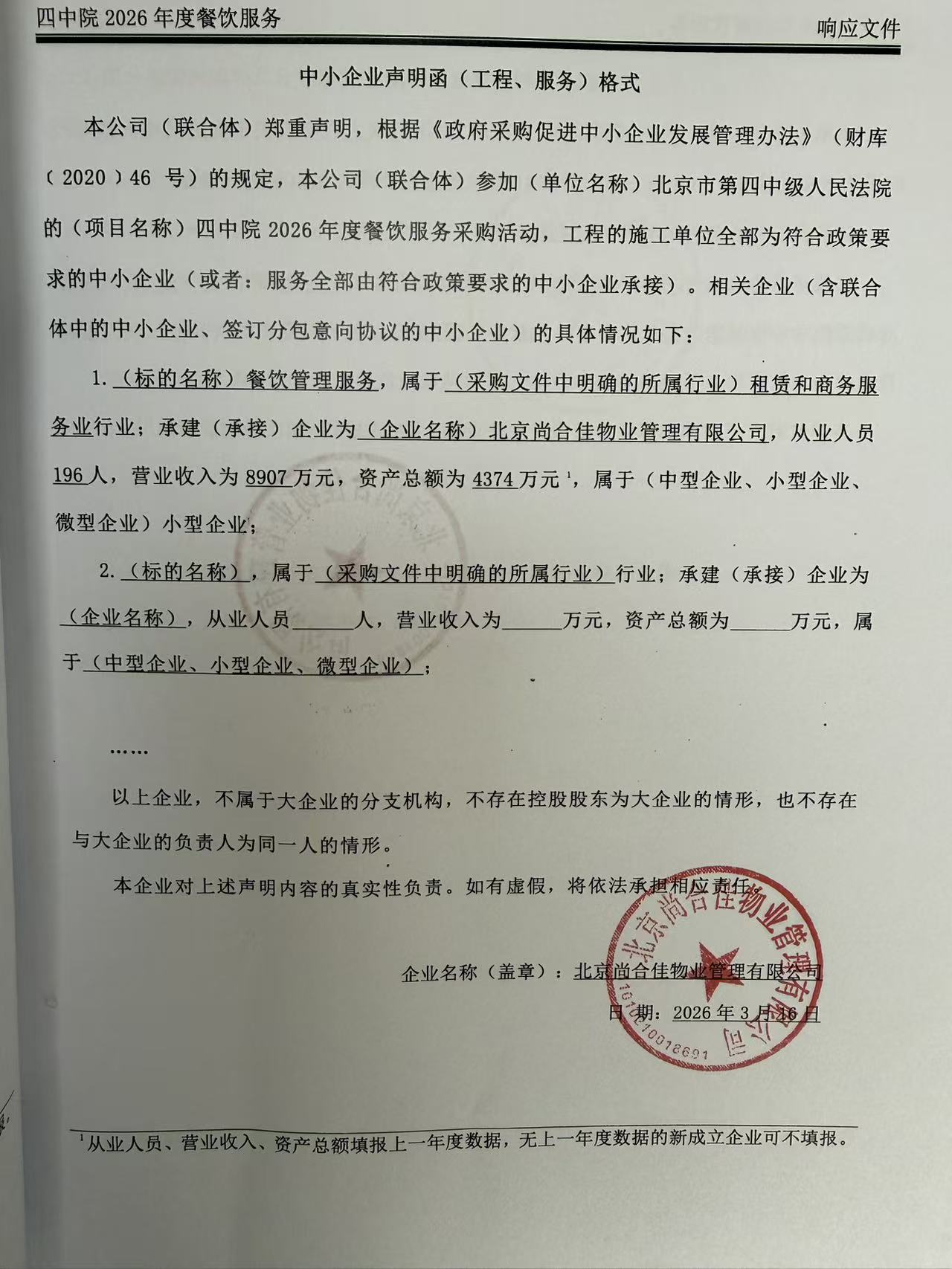 | 北京尚合佳物业管理有限公司 | * | ***.*万元 | ***.*万元 | 详见竞争性磋商文件 |