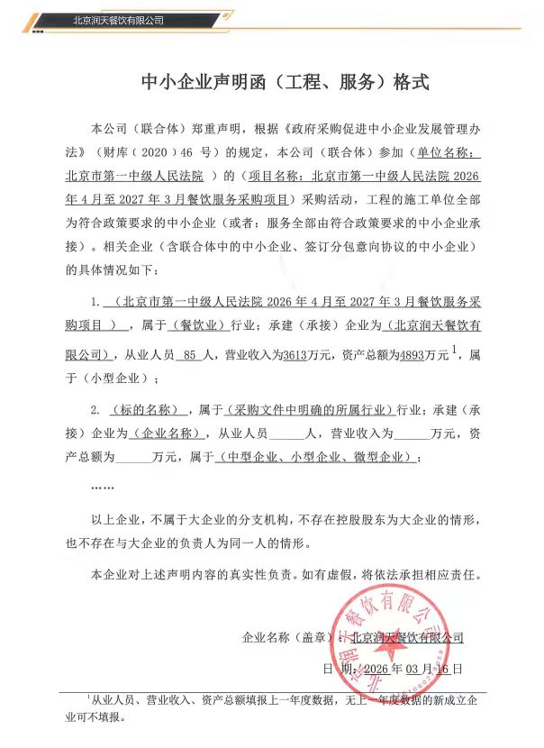 中标成交供应商名称:北京润天餐饮有限公司