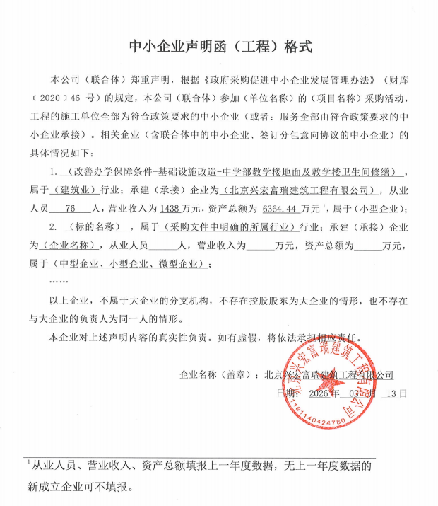 二、项目名称:改善办学保障条件*中学部教学楼地面及教学楼卫生间修缮采购项目