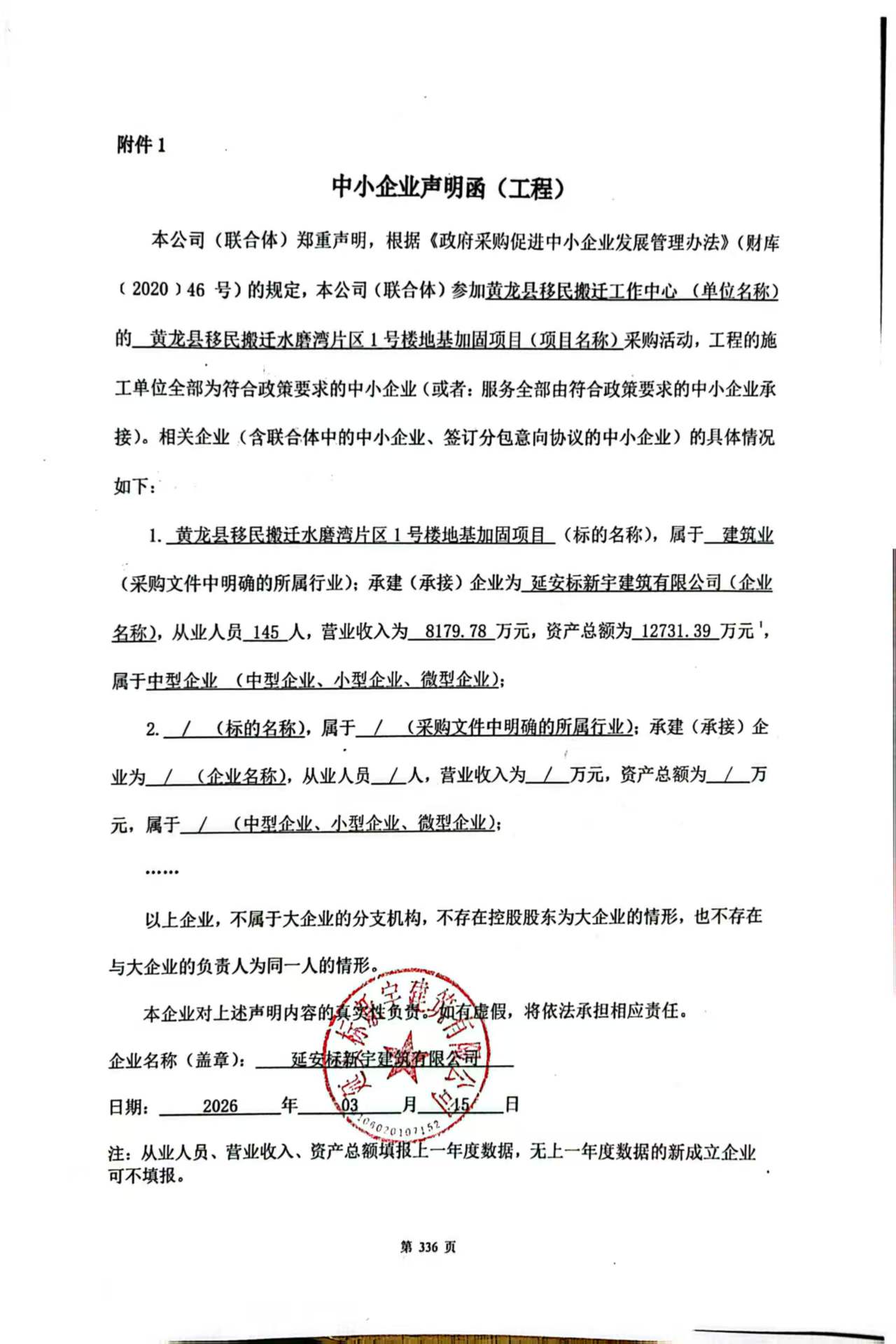黄龙县移民搬迁水磨湾片区1号楼地基加固项目中标(成交)结果公告