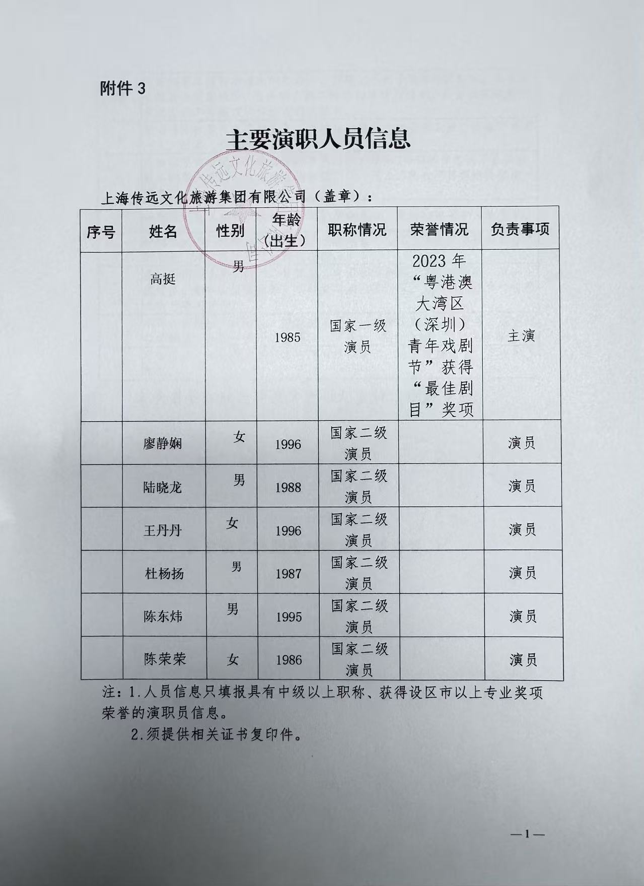 演职人员信息(按《公告》附件*格式填写):附件三(盖章).***