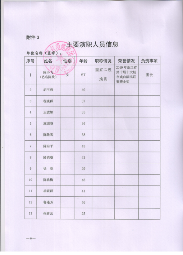 演职人员信息(按《公告》附件*格式填写):主要演职人员.***