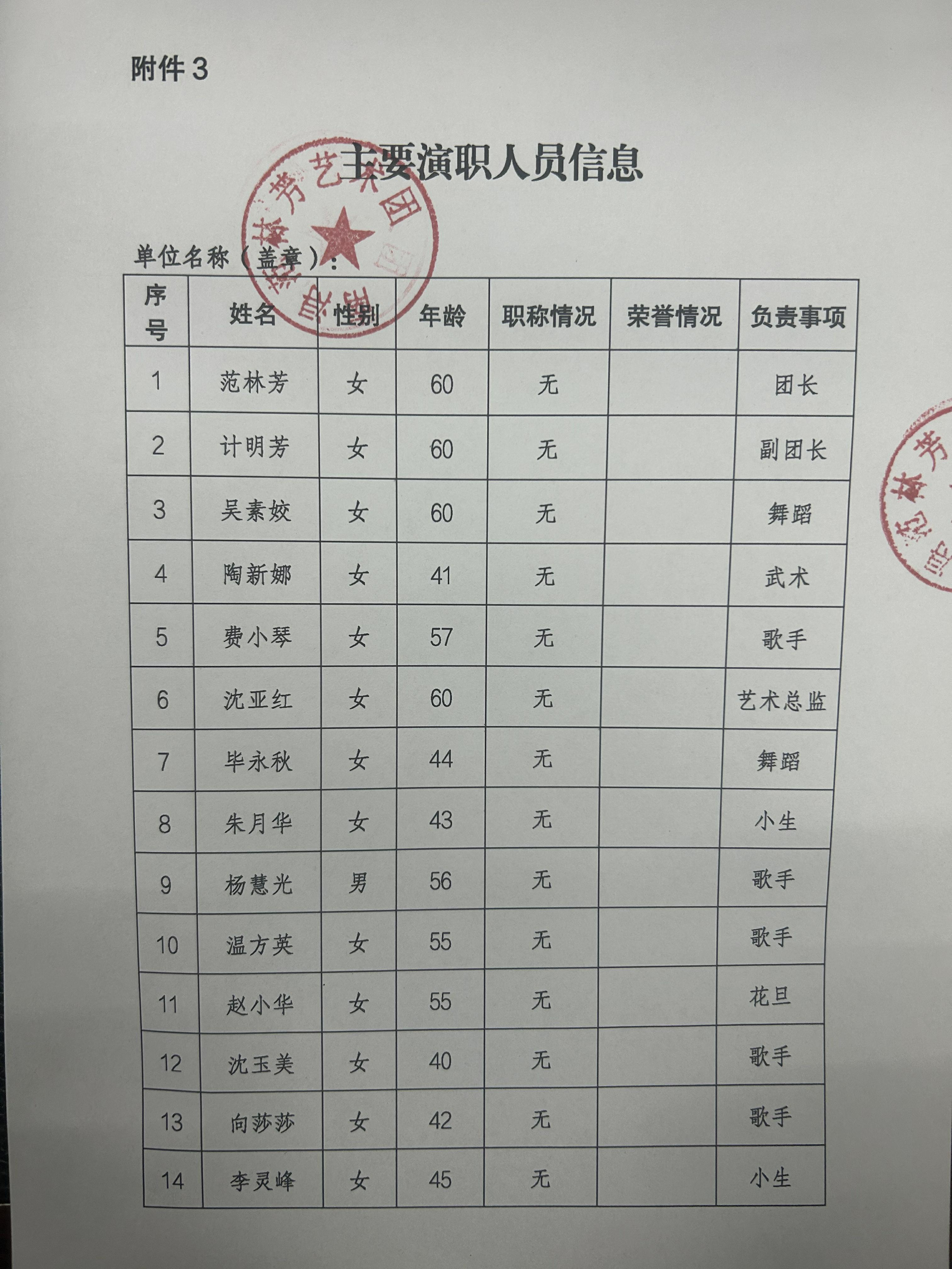 演职人员信息(按《公告》附件*格式填写):主要演职人员信息*.***