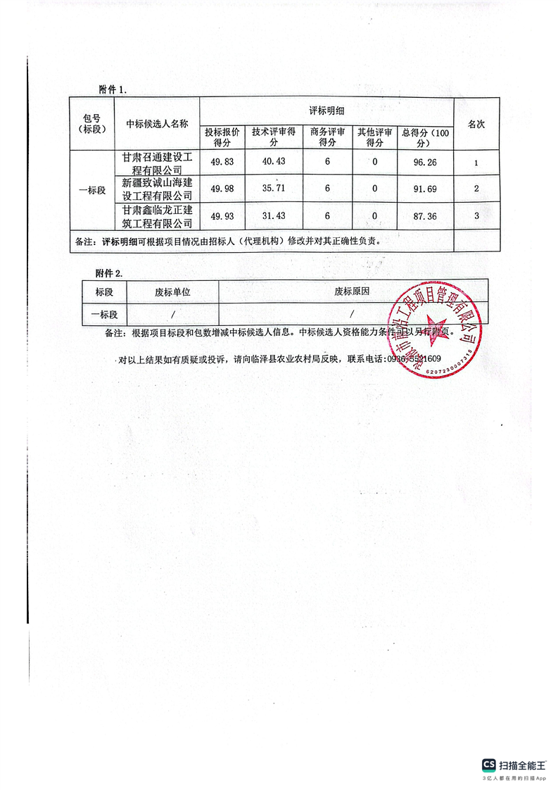 甘肃/张掖 中标结果