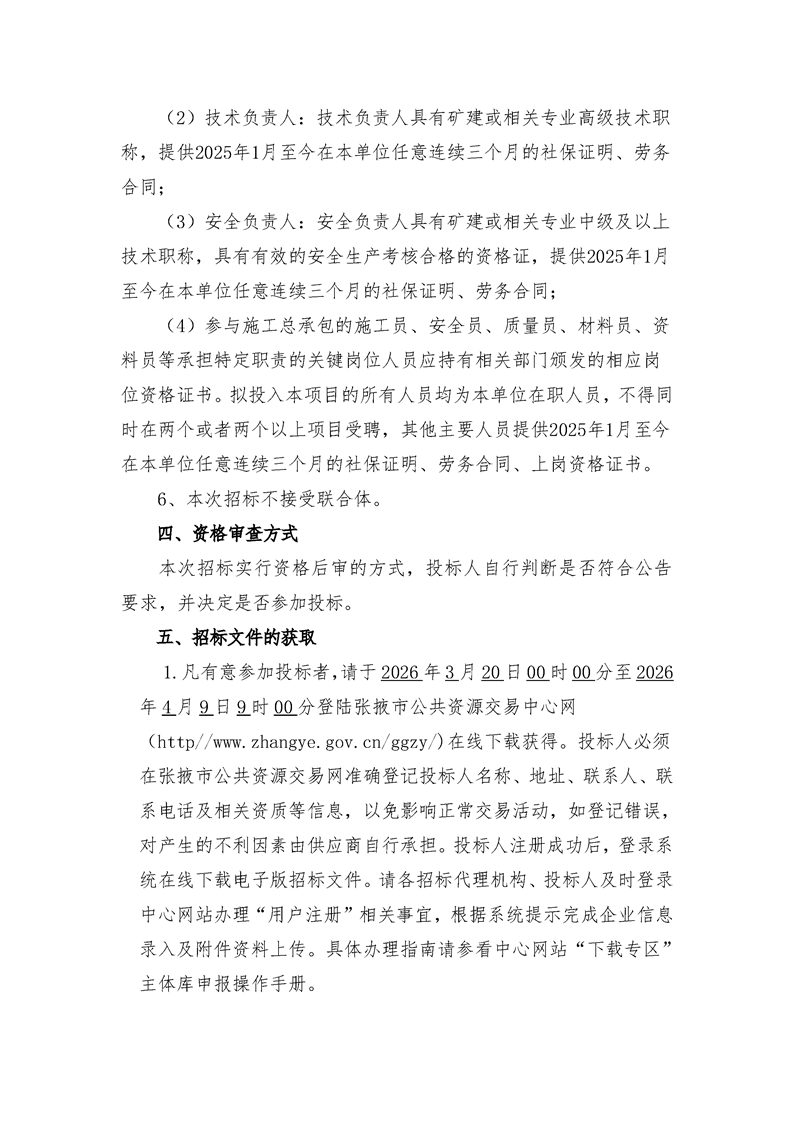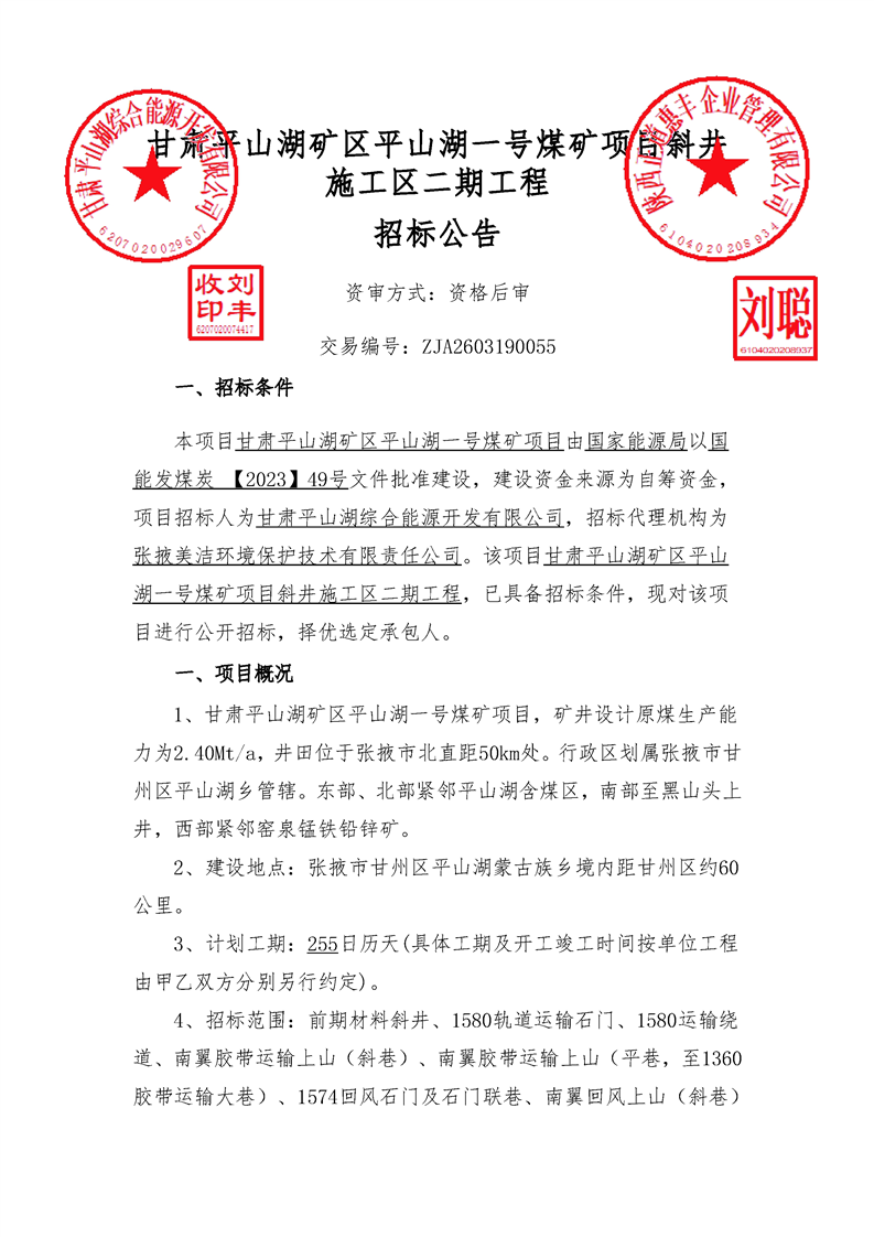 甘肃平山湖矿区平山湖一号煤矿项目斜井施工区二期工程[招标/资审公告]