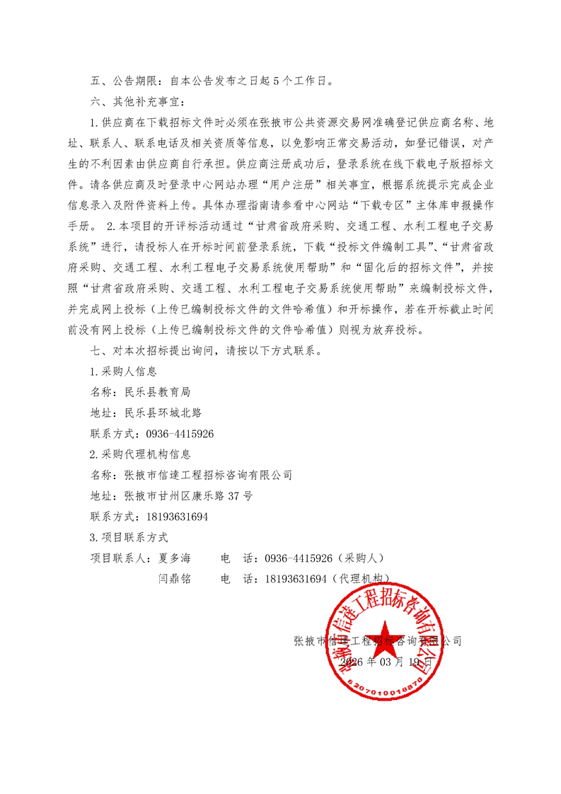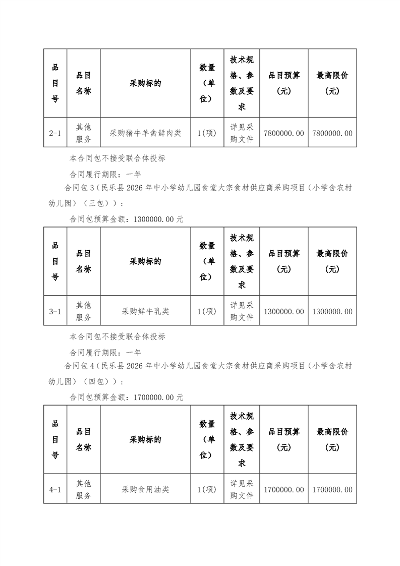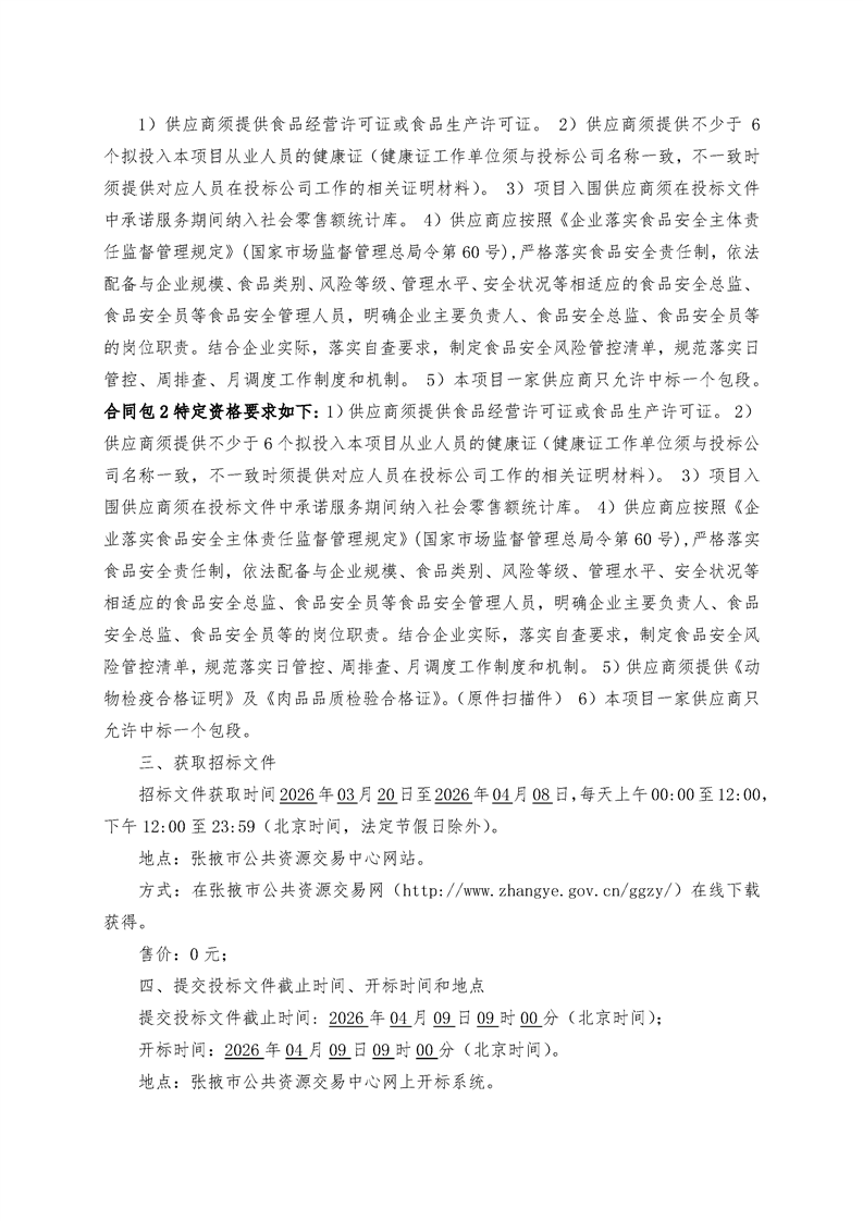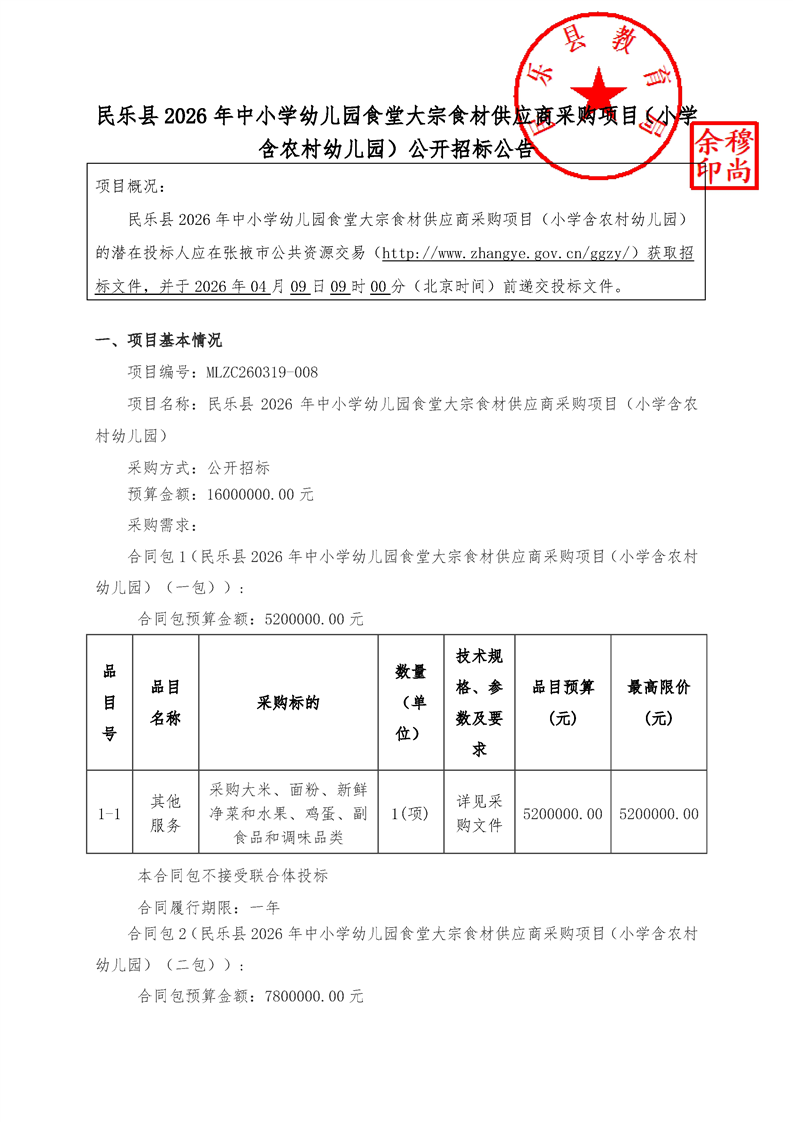 民乐县2026年中小学幼儿园食堂大宗食材供应商采购项目(小学含农村幼儿园)公开招标公告[采购/资审公告]