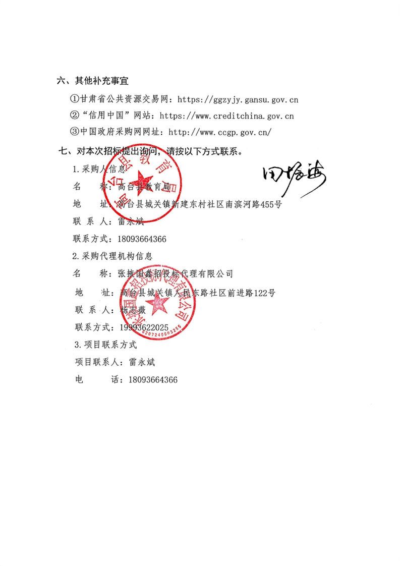 甘肃/张掖 招标采购