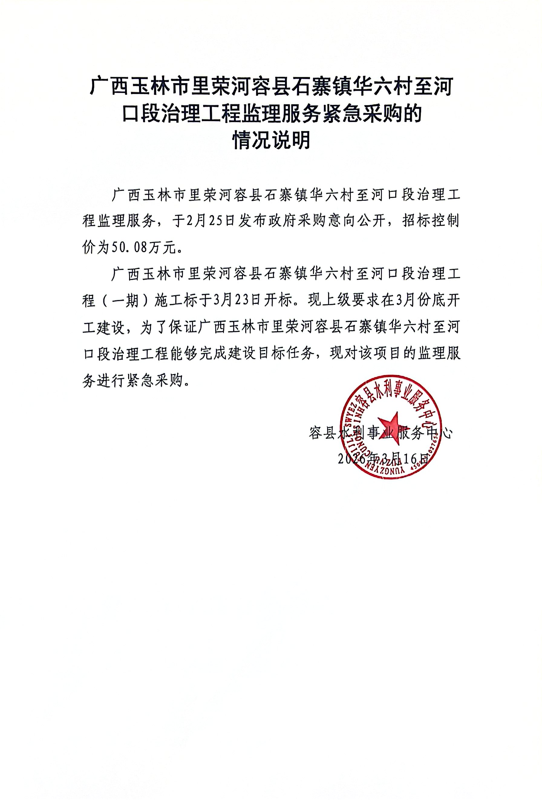 项目名称:广西玉林市里荣河容县石寨镇华六村至河口段治理工程监理服务