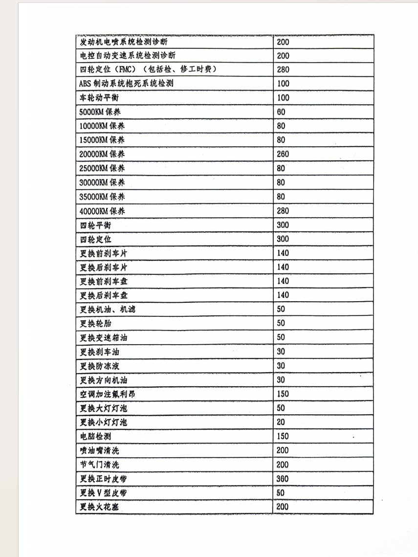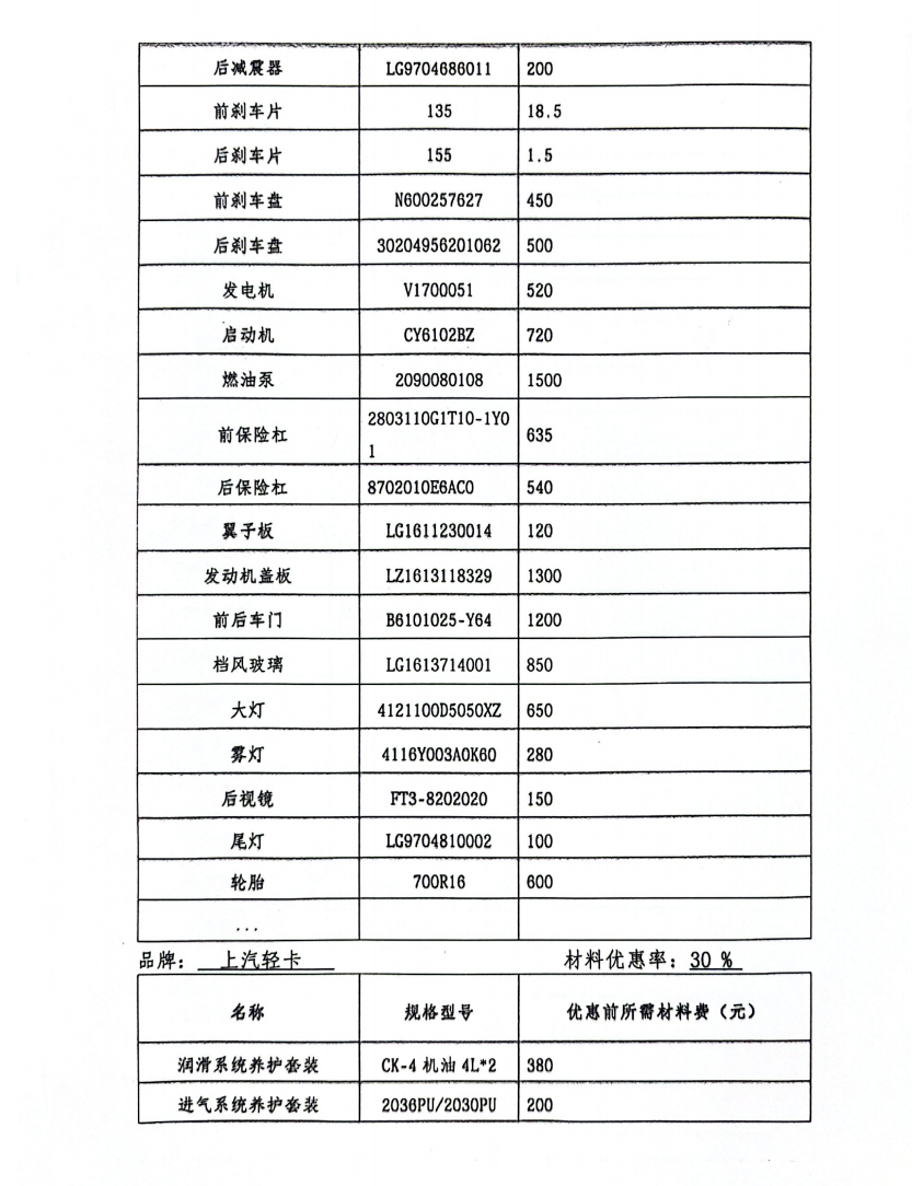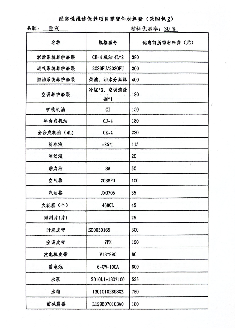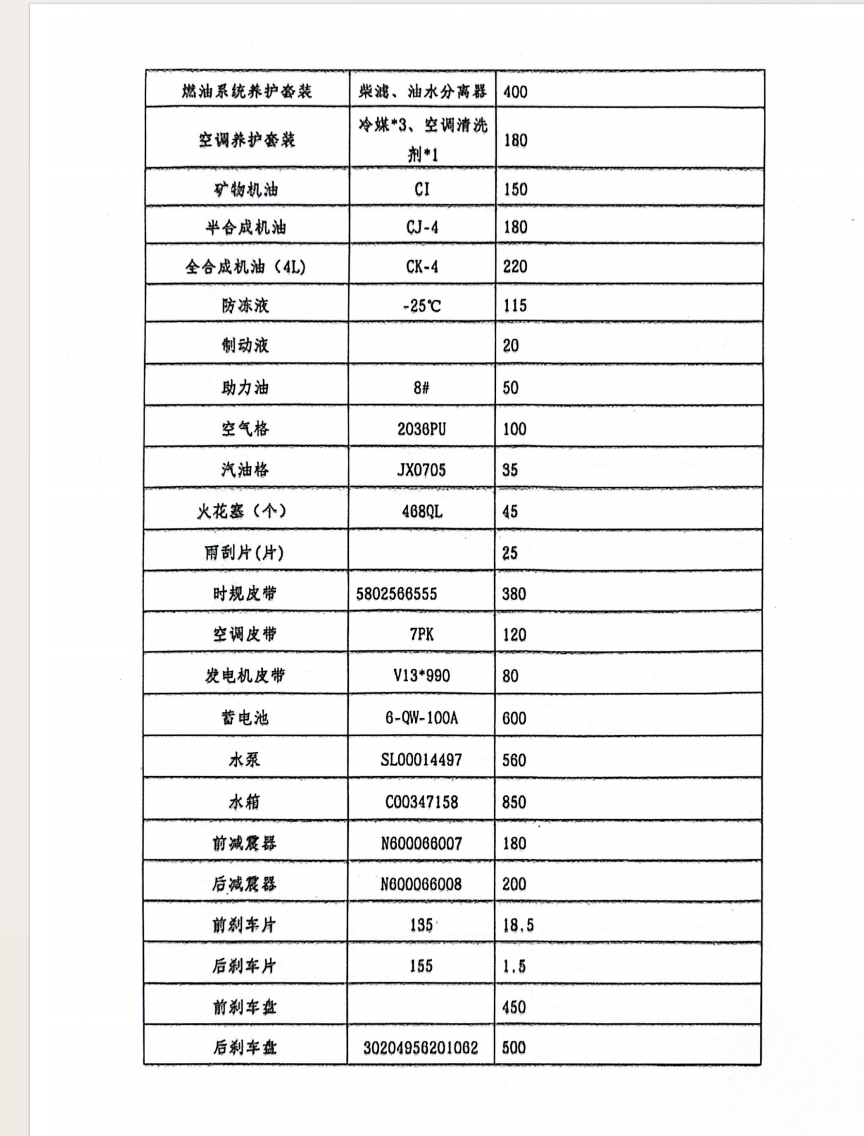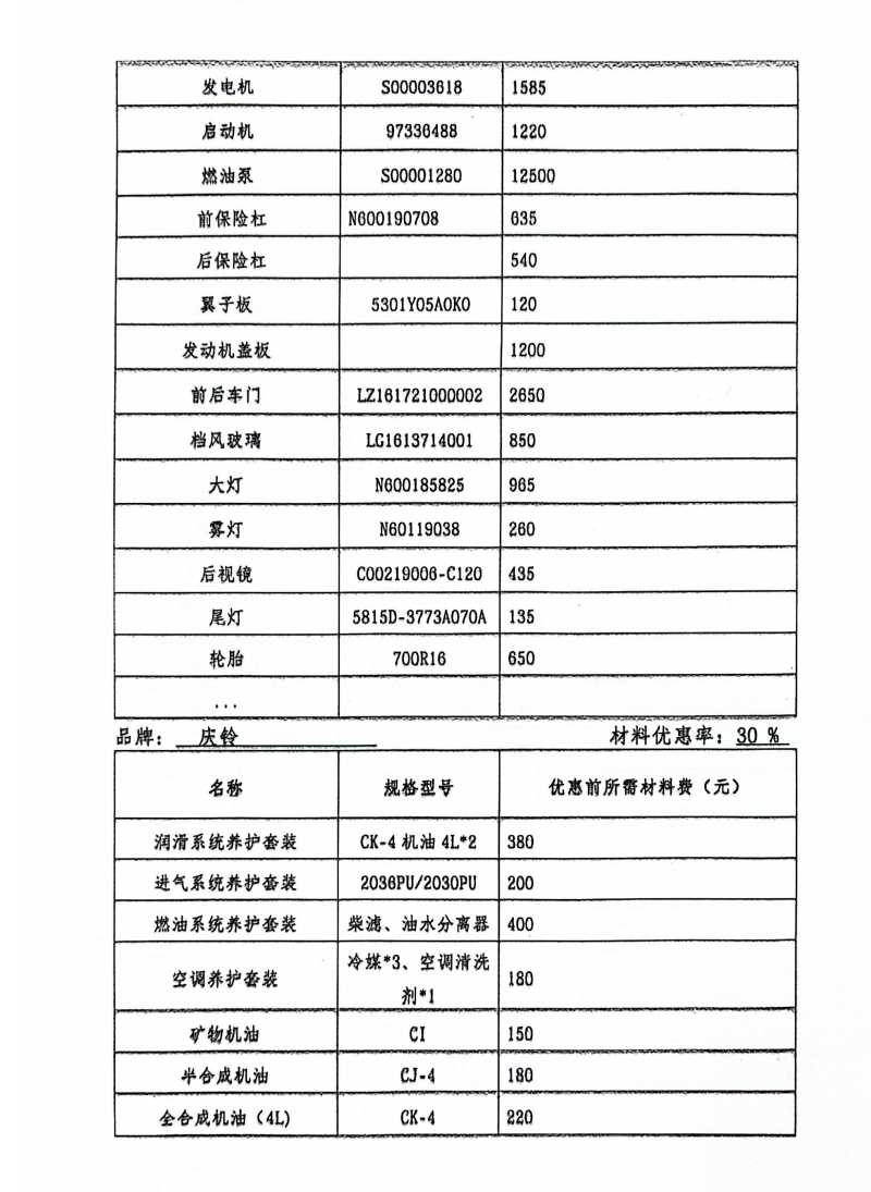 经常性维修保养项目零配件材料费:配件材料费*.***