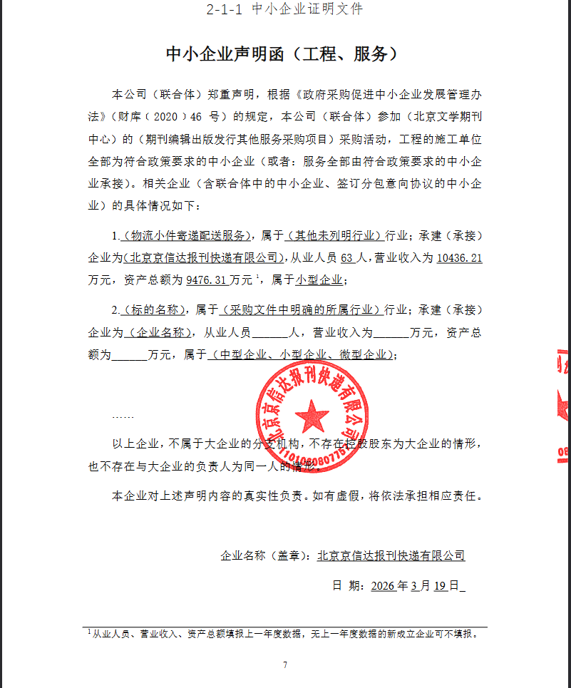 中标成交供应商名称:北京京信达报刊快递有限公司