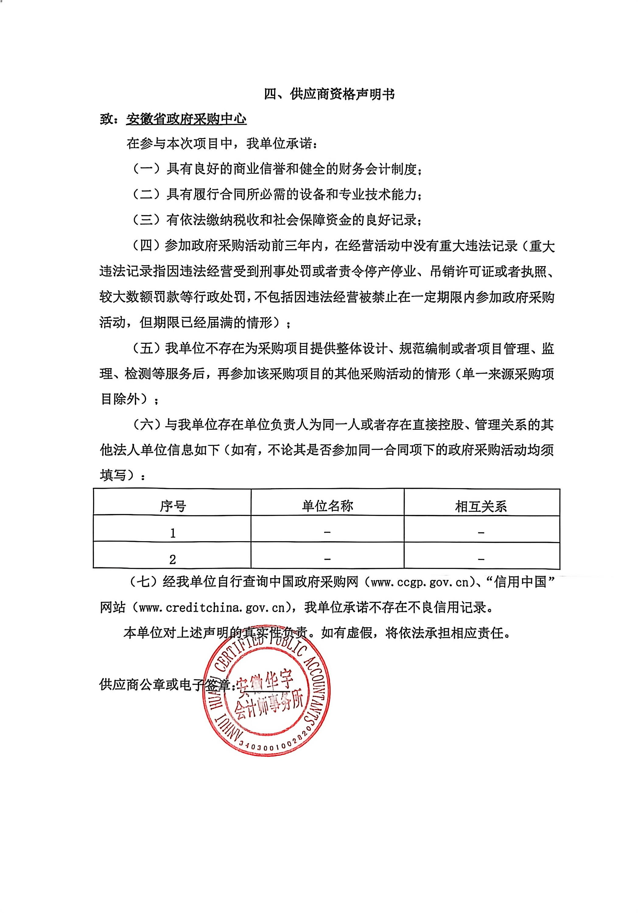 供应商名称:安徽华宇会计师事务所